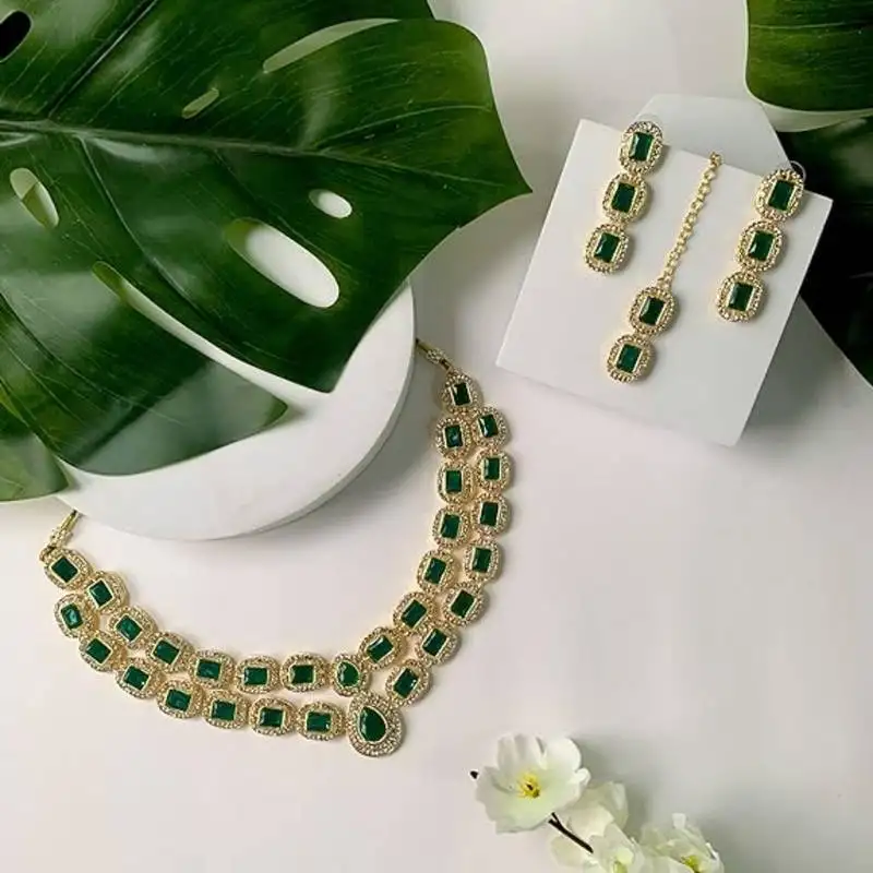 • Traditional stone choker necklace jewellery with earring & maang tikka set for women & girls
