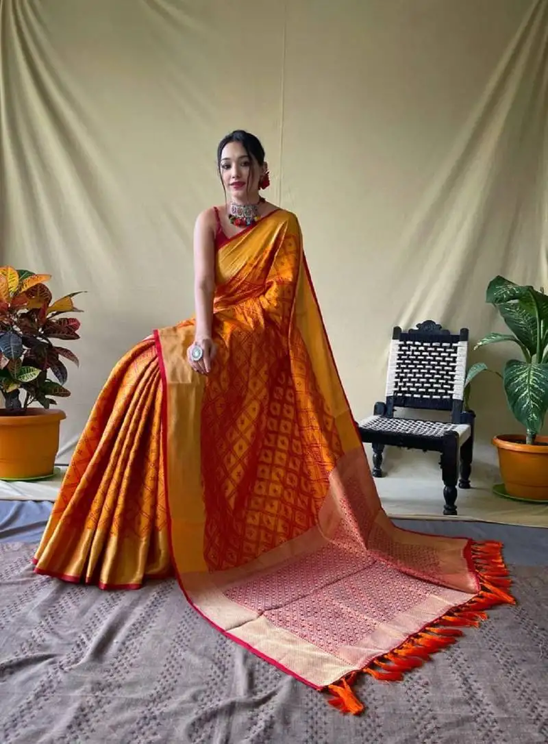 Sale!Mustard woven faux kanchipuram zari silk saree with blouse piece