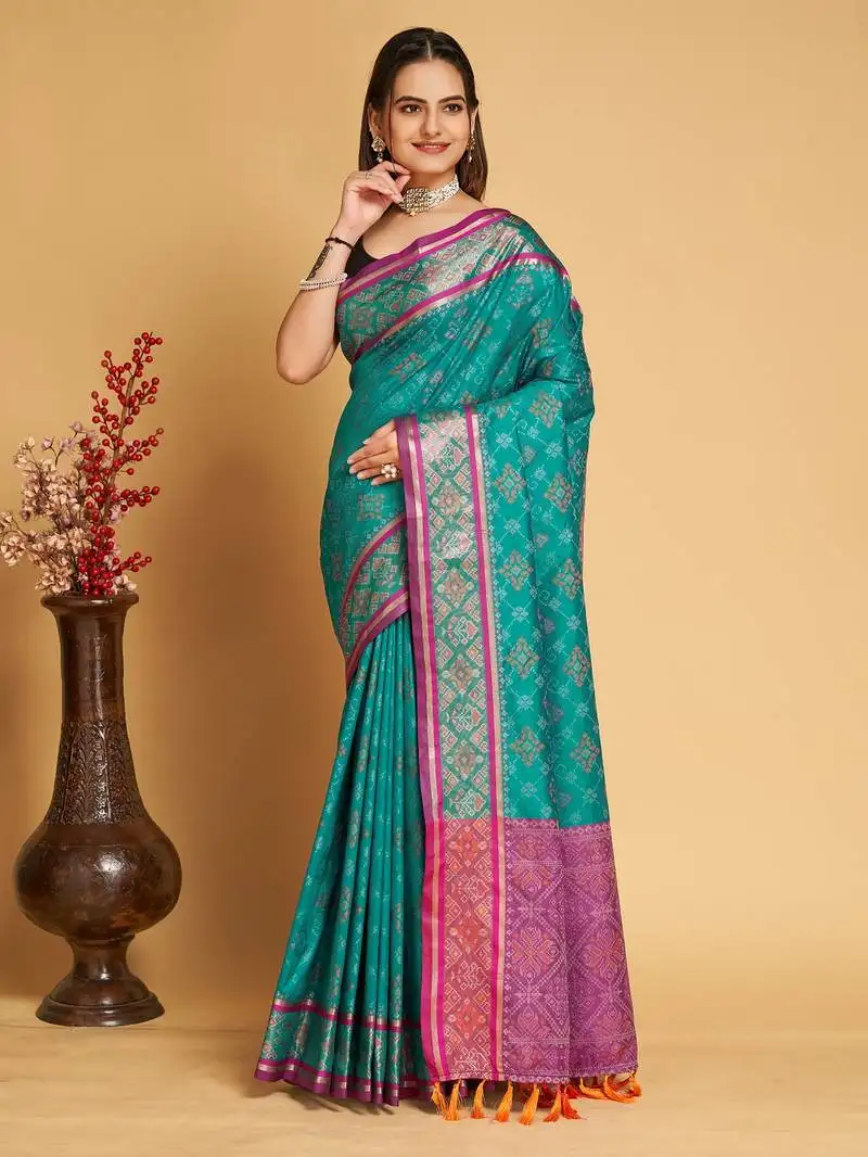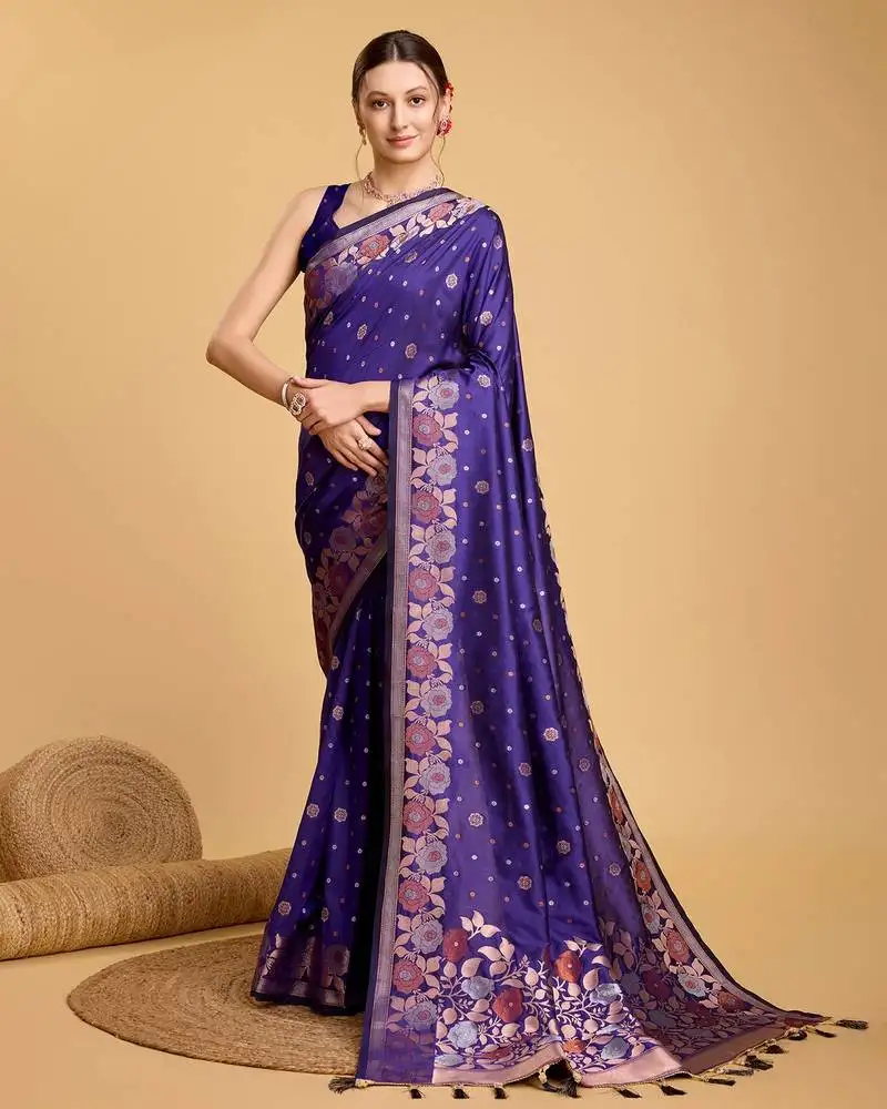 • Violet woven faux banarasi zari silk saree with blouse piece