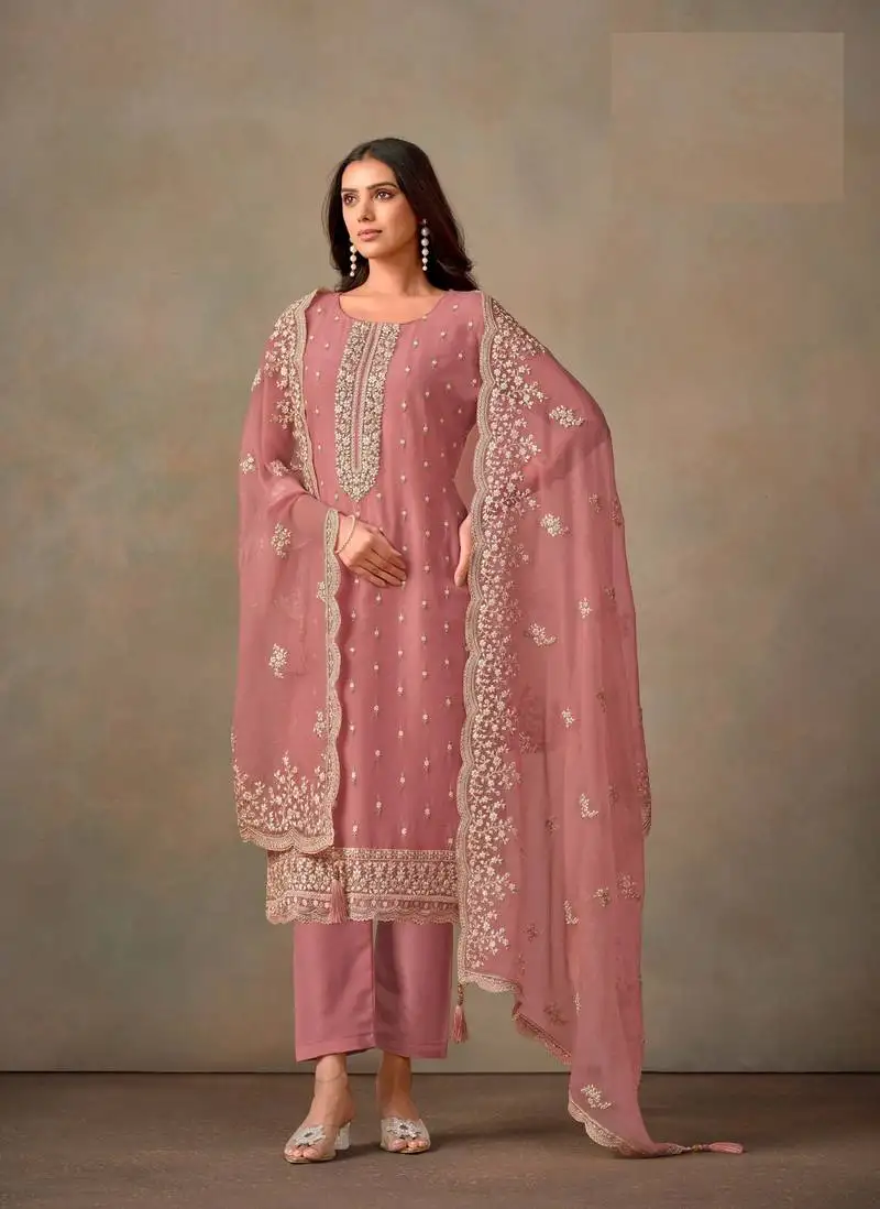 Pink embroidered organza semi-salwar suit semi stitched