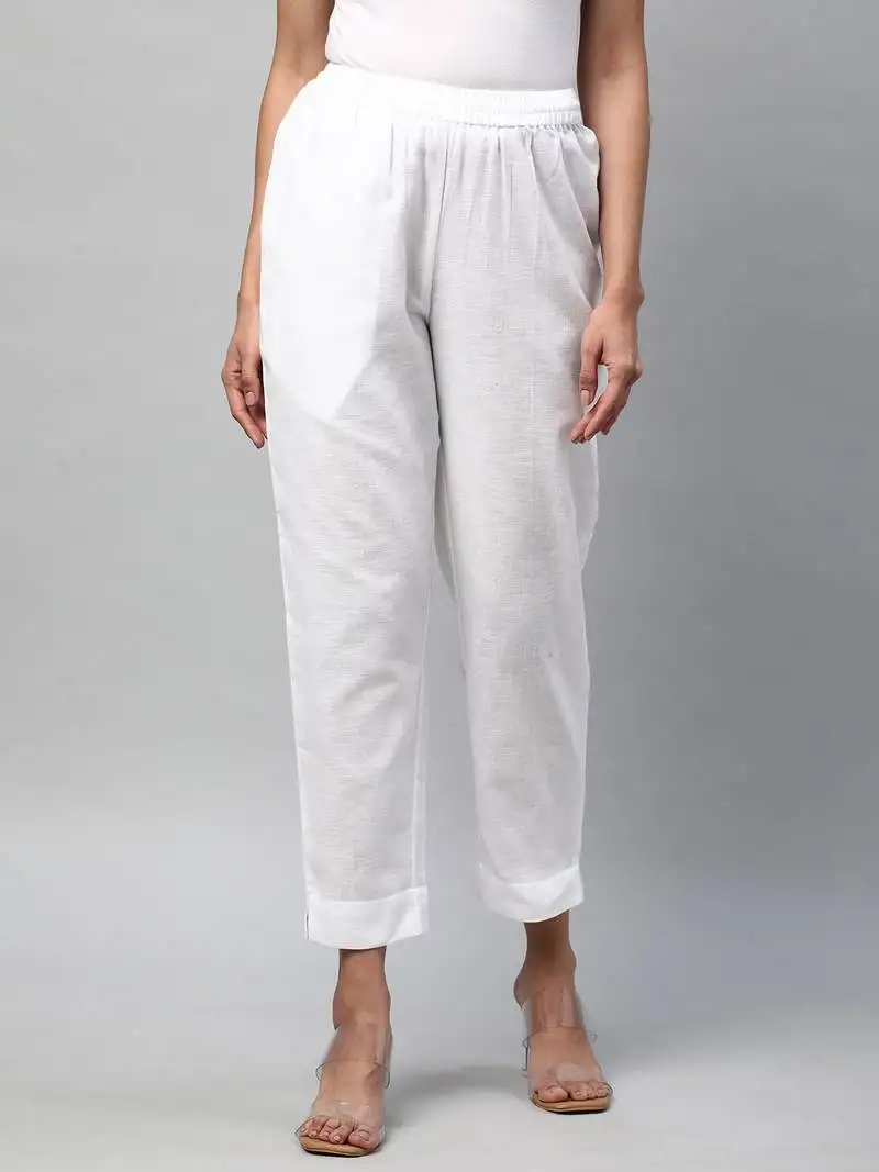 Sale!A fully elasticated white ankle length cotton linen pant.