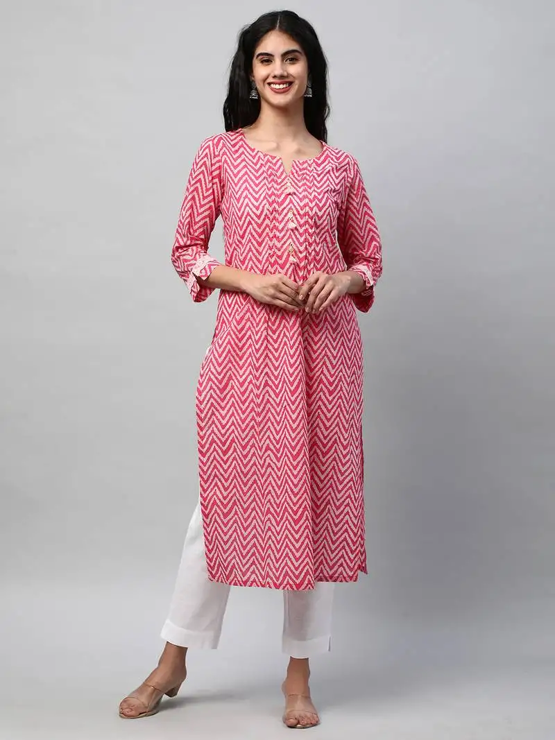 Sale!Straight fit kurta in chevron printed cotton with gathers in front.
