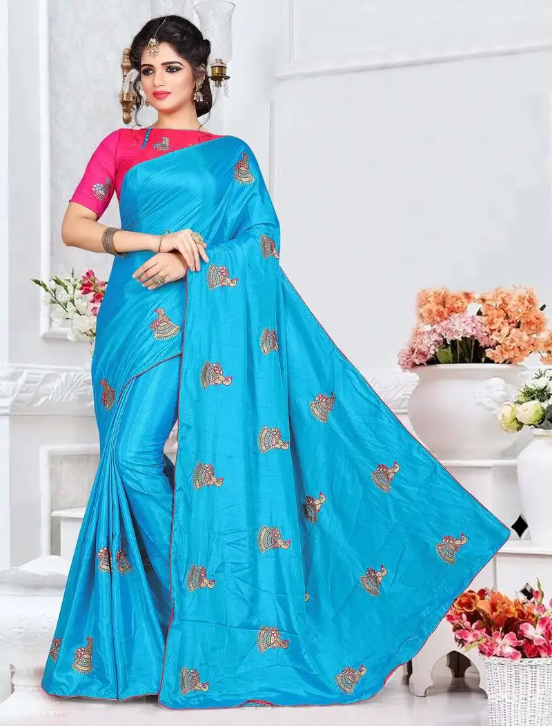 • Blue embroidered chanderi eid party salwar with dupatta - unstitched