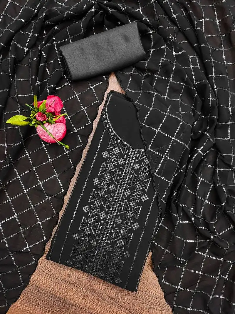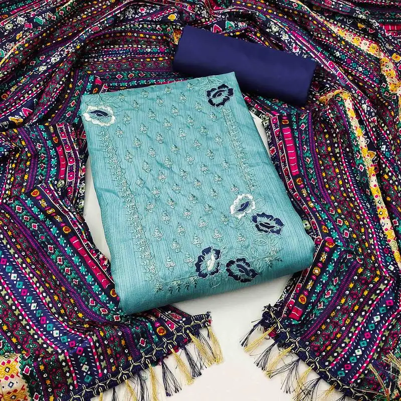 Blue embroidered chanderi eid party salwar with dupatta – unstitched