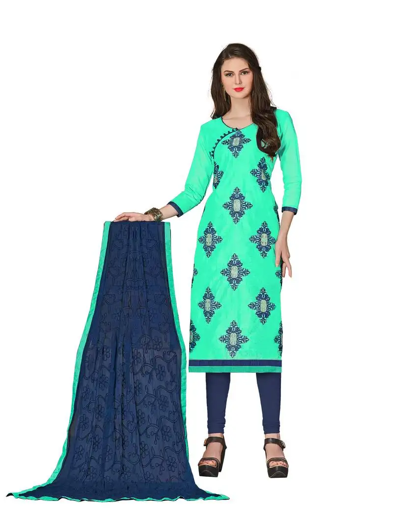 Sea green embroidered chanderi salwar with dupatta unstitched