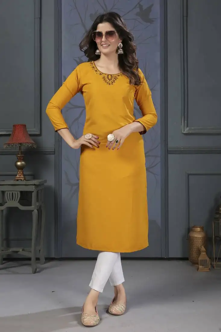 • Yellow colour hand work with pocket kurti on cotton fabric for formal looks
