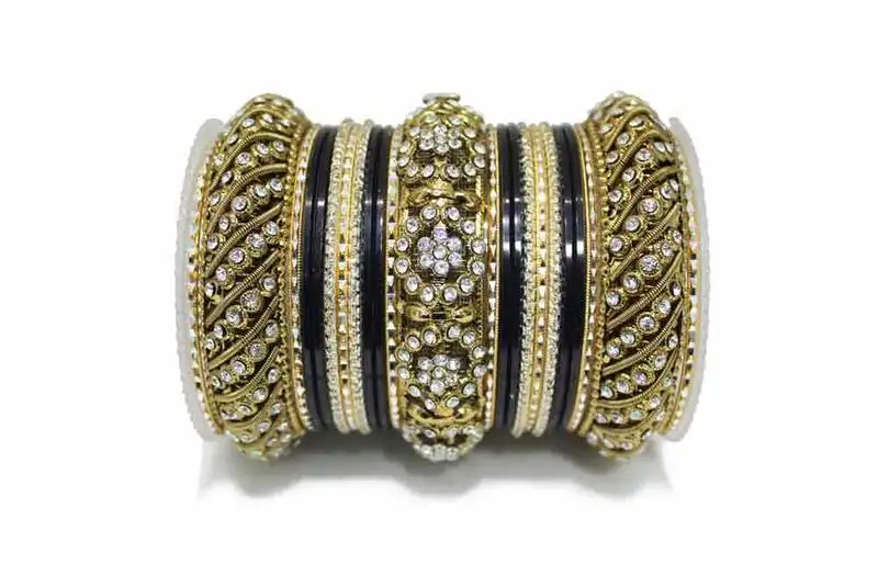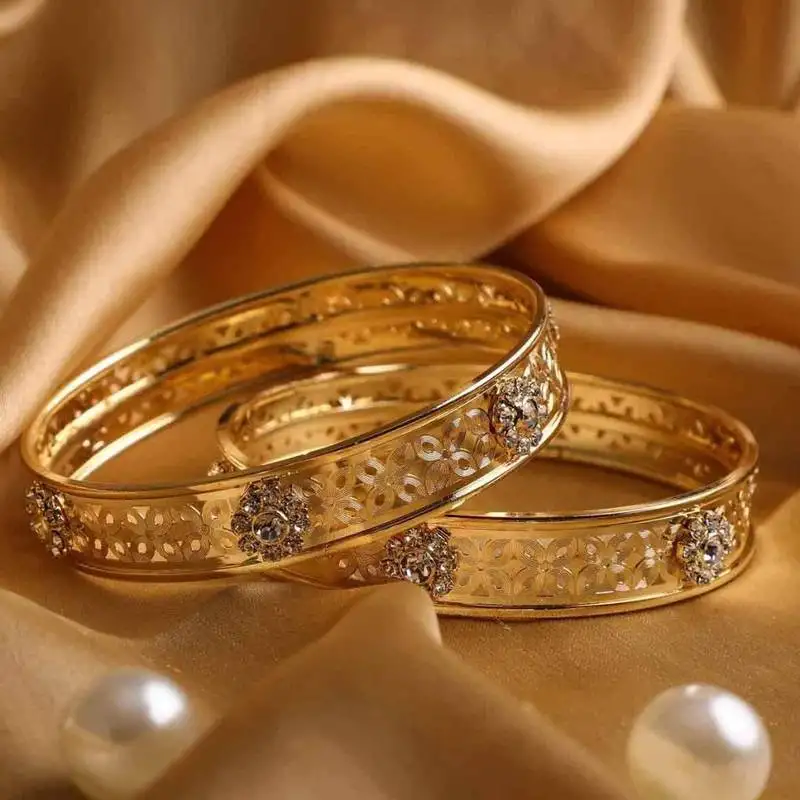 • Beautiful pair of golden stone bracelets with intricate jaaliwork