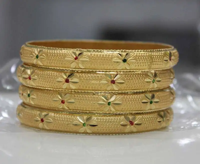 Beautiful set of 4 gold dyed bracelets with flower design and meenakari work