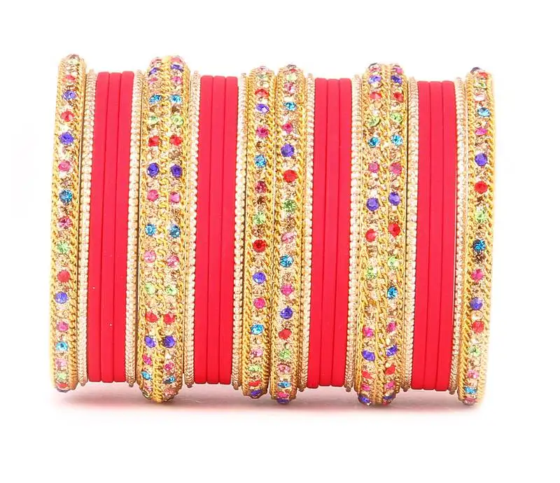 Sale!Golden bracelet with multi coloured stones and matte finish bangle set for women