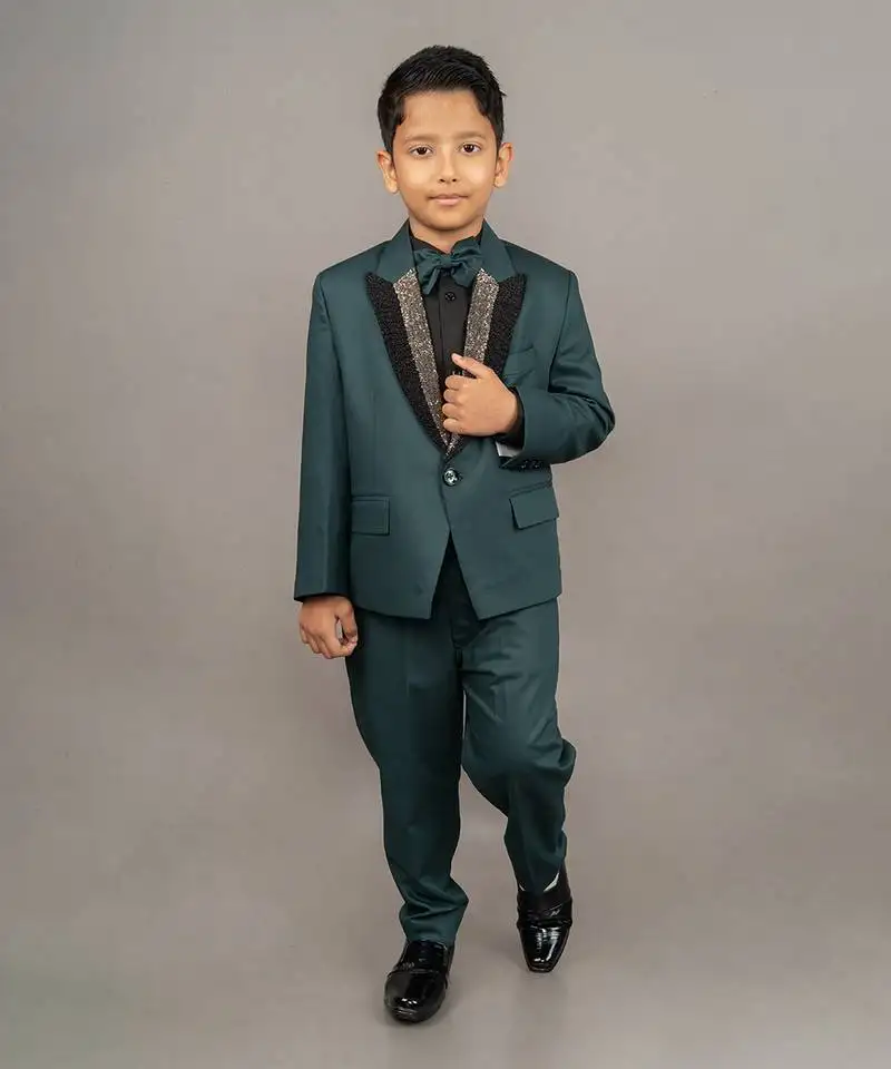 Sale!Green cotton blend embroidery tuxedo set