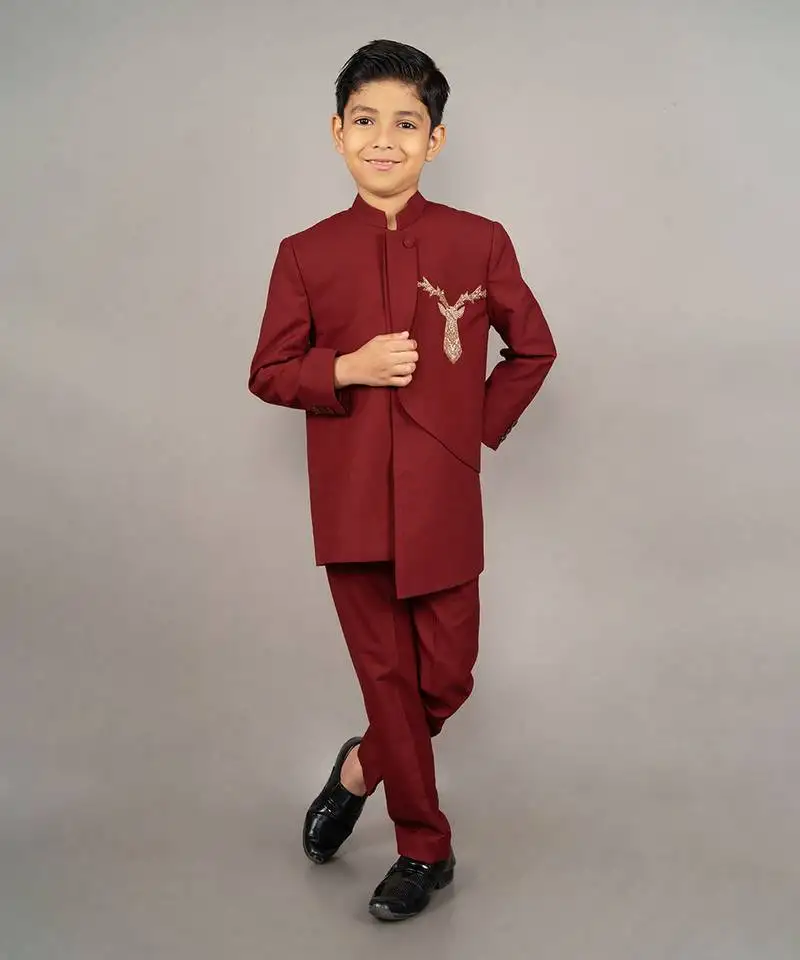 Sale!Maroon viscose blend embroidery bandhgala set