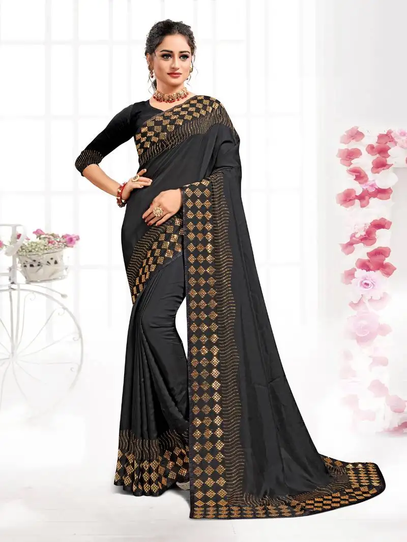 Black sequence embroidered siroski stone border art silk saree with blouse piece