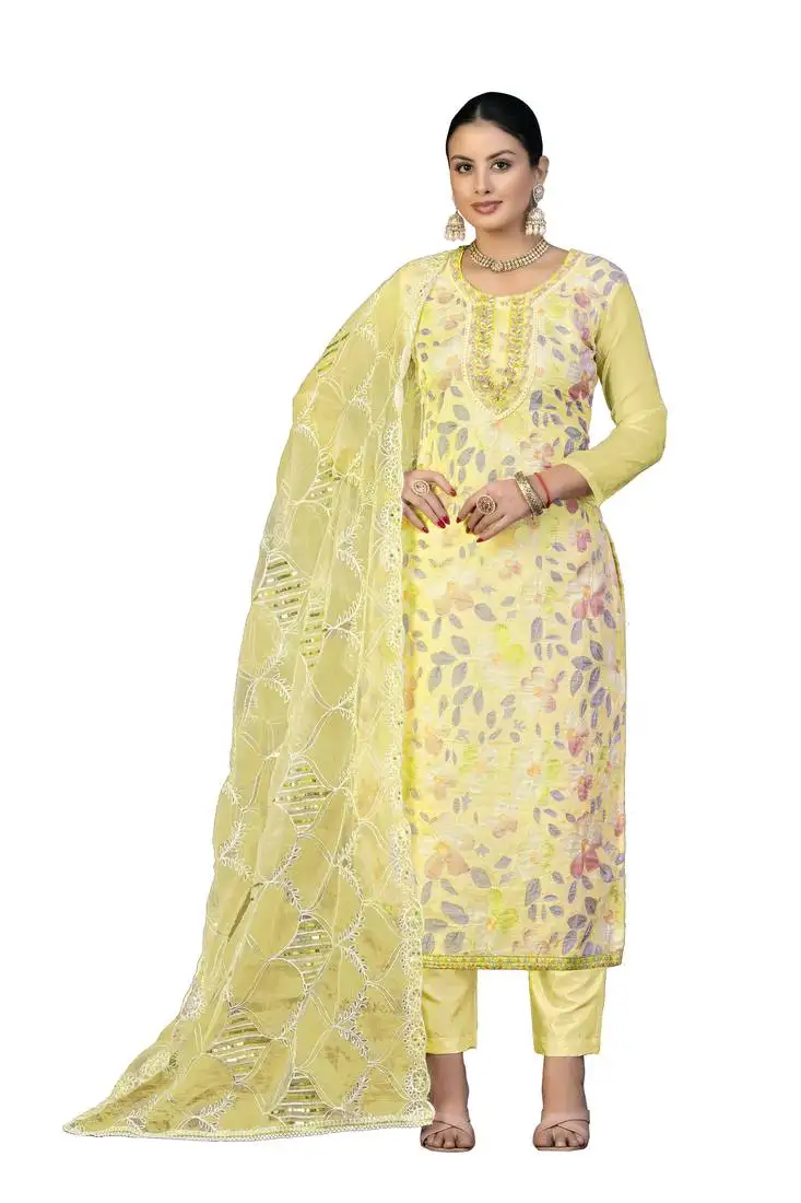 Sale!Yellow ebroidered cotton salwar with dupatta semi stitched