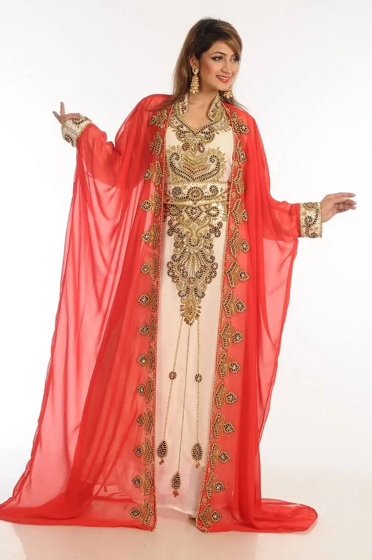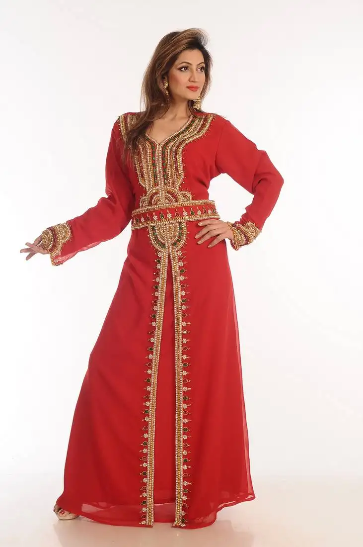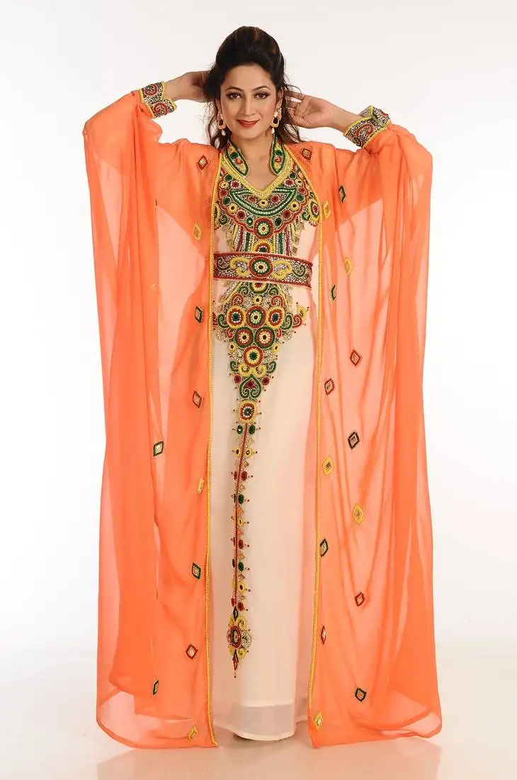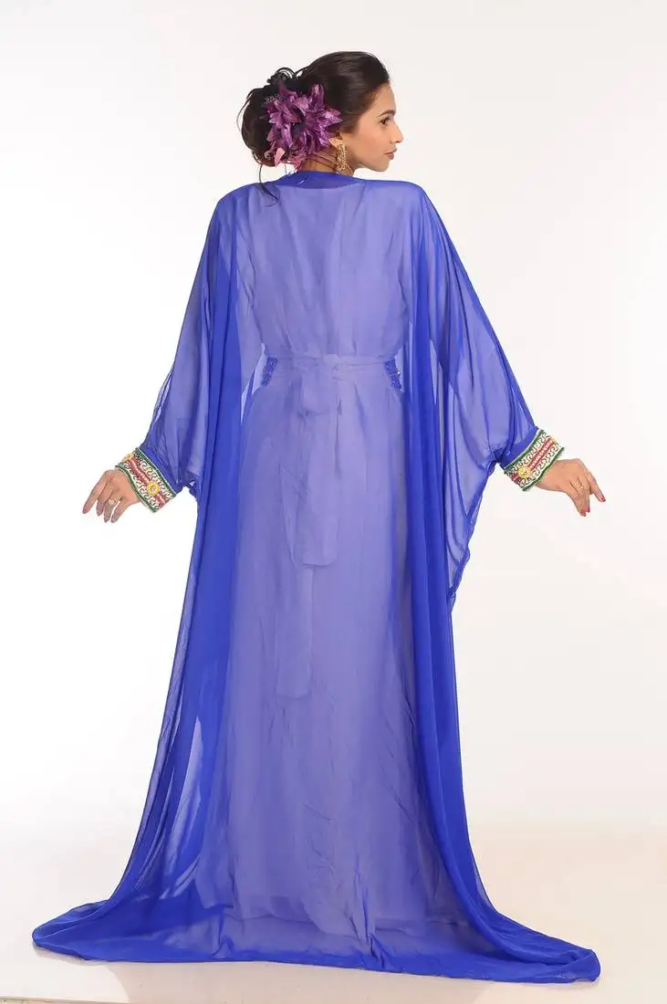 Sale!Multicolor zari work georgette islamic style party wear stones and beads embedded arabian kaftan