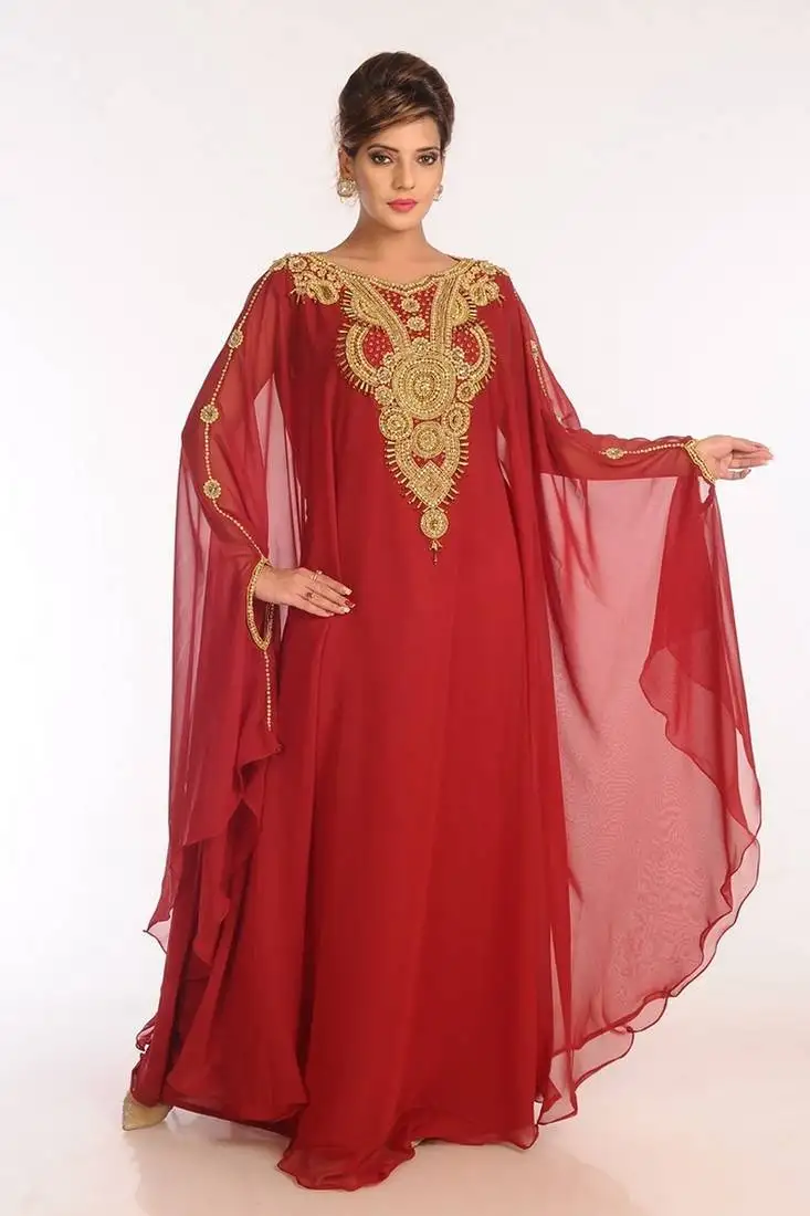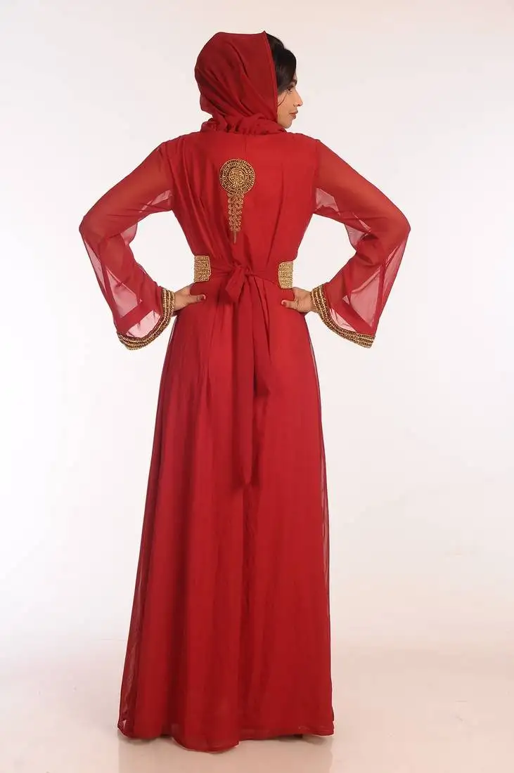 Sale!Maroon zari work stones & beads embellish georgette islamic style arabian maxi partywear kaftan