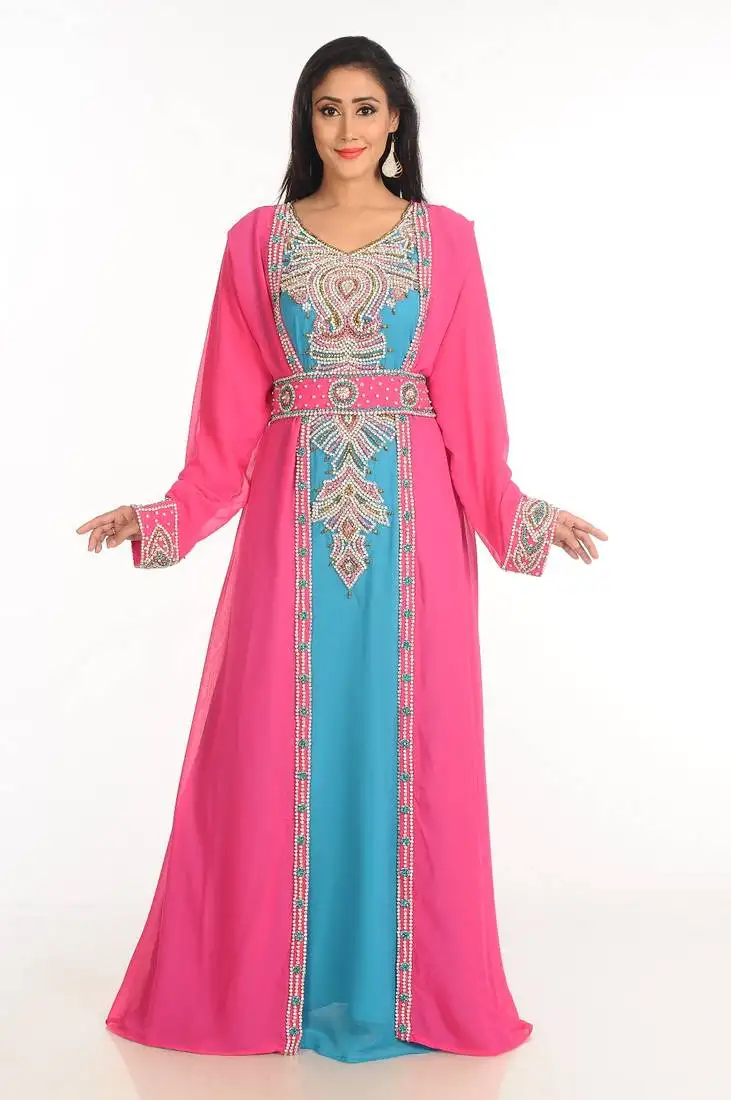 Multicolor zari work stones & beads embellish georgette islamic style arabian maxi partywear kaftan