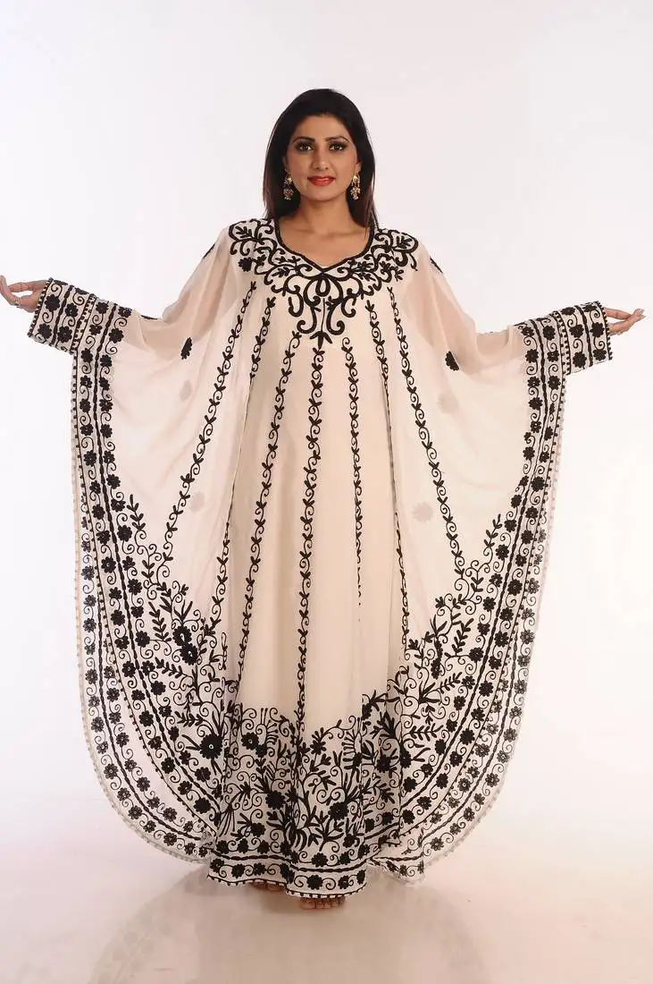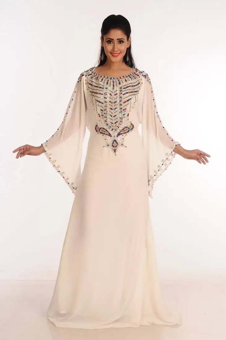 Off white zari work stones & beads embellish georgette islamic style arabian maxi partywear kaftan
