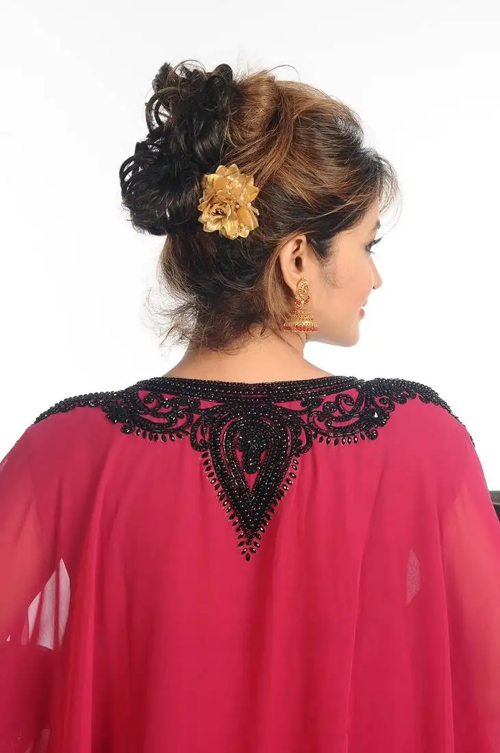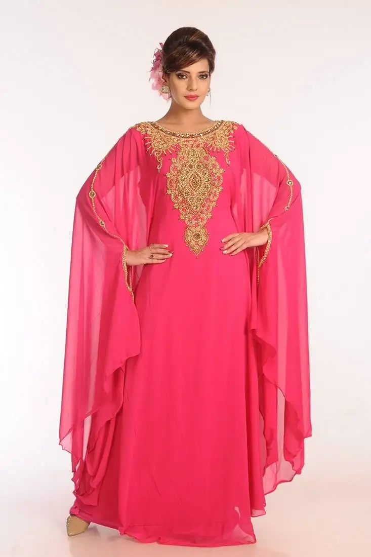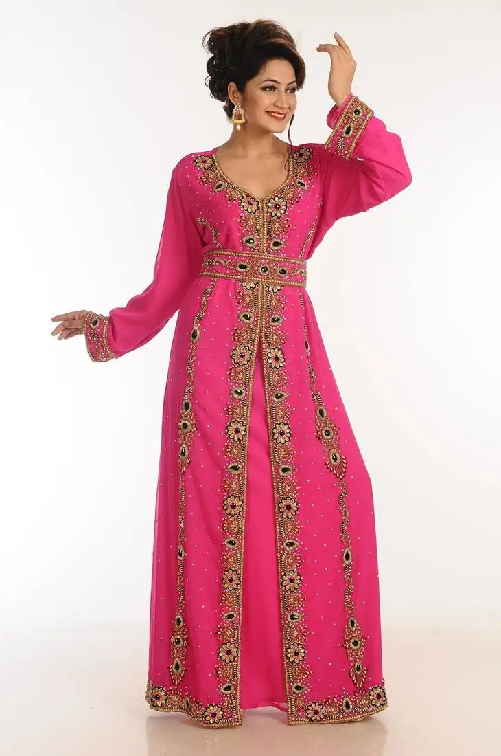 Sale!Pink zari work stones & beads embellish georgette islamic style arabian maxi partywear kaftan