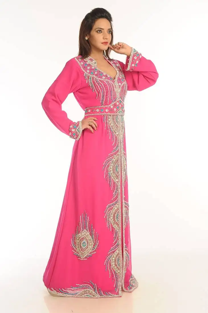 Sale!Pink zari work georgette islamic style party wear stones and beads embedded arabian kaftan