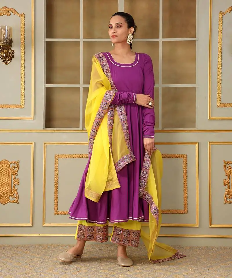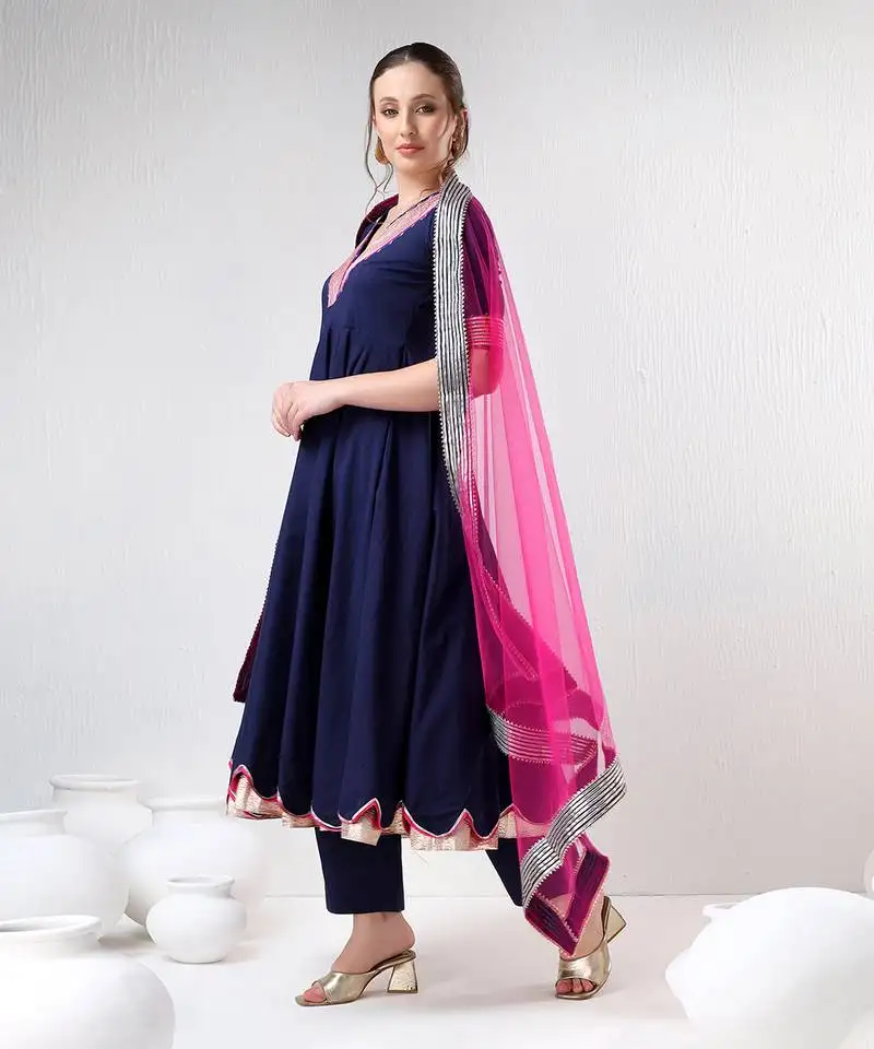 Sale!Royal blue raani pink cotton silk anarkali set