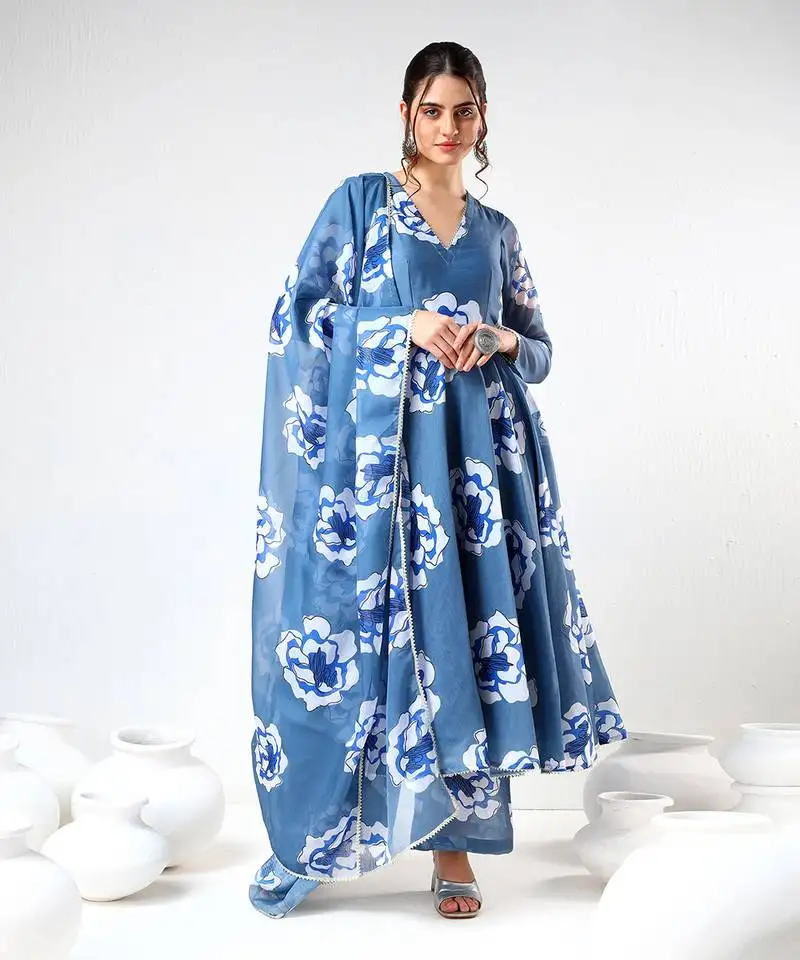Sale!Powder blue carnation organza anarkali set
