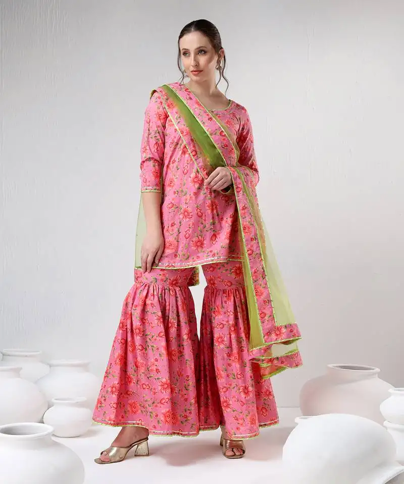 Sale!Pink floral print cotton sharara set