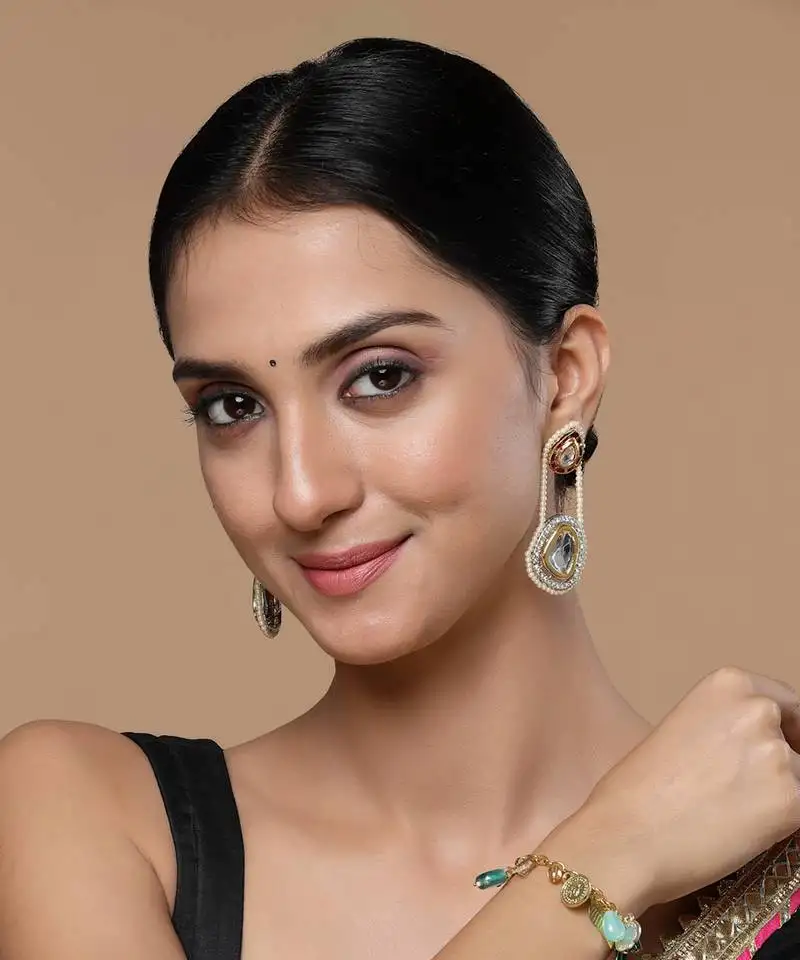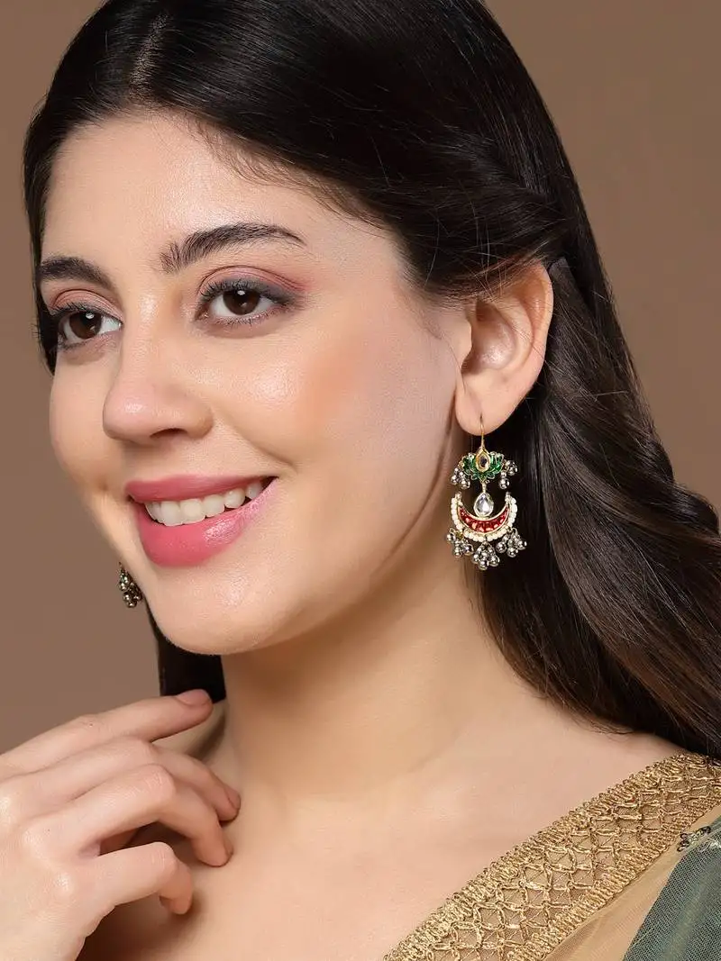 Sale!Red & green drop earring with kundan & pearls