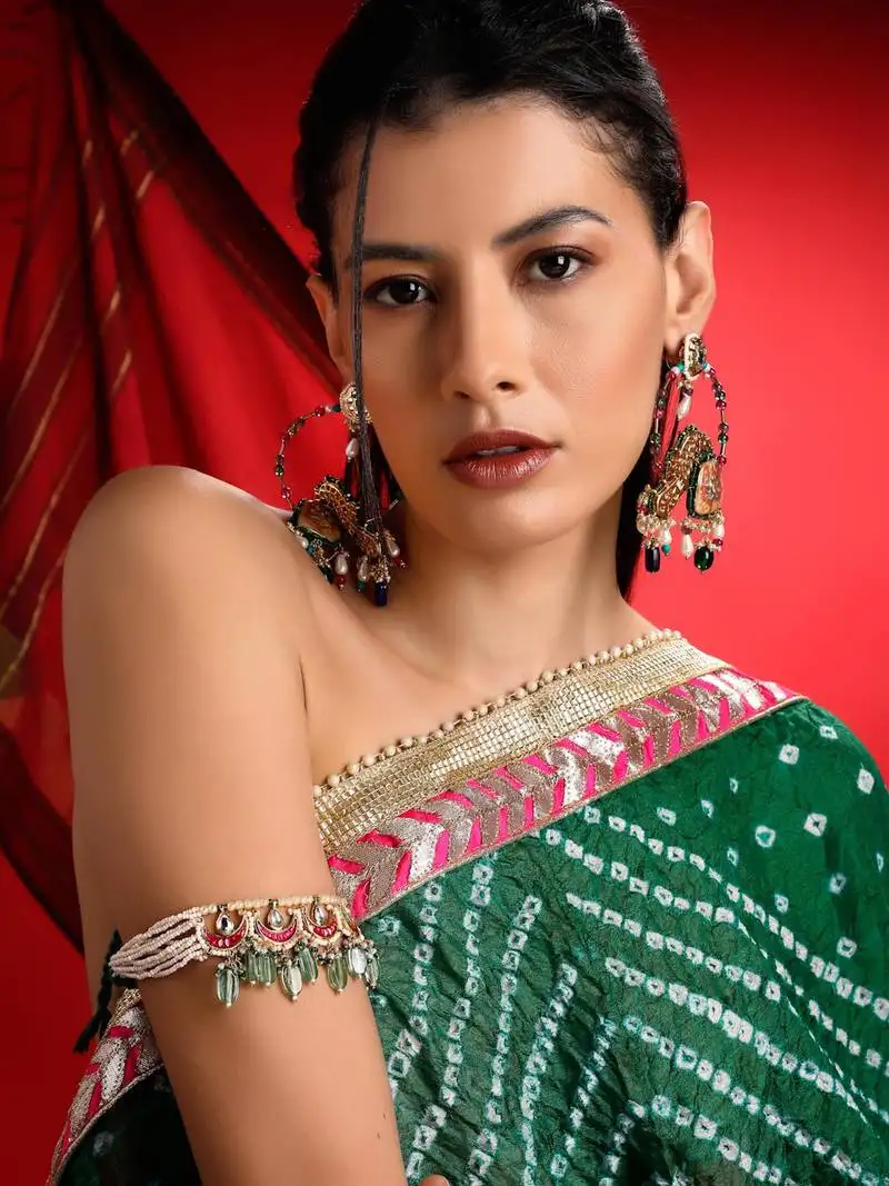 Sale!Red & green adjustable bajuband with kundan & pearls
