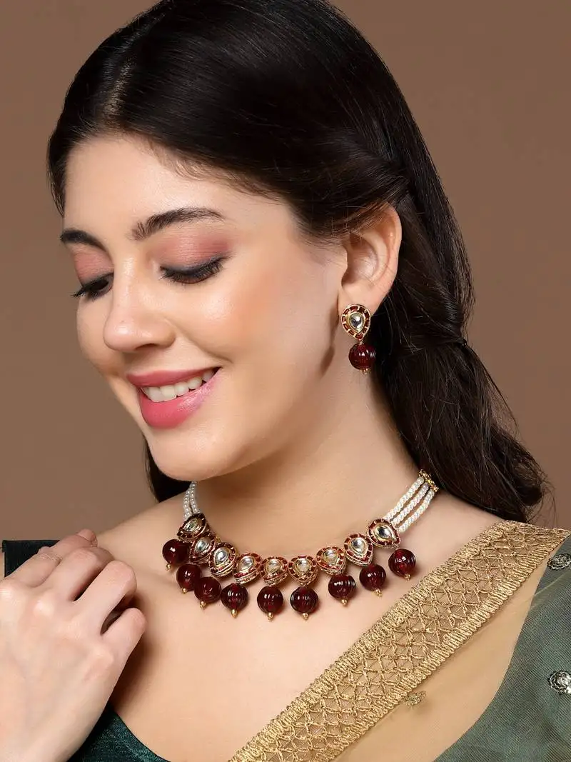Sale!Red & gold chokar necklace kundan & pearls
