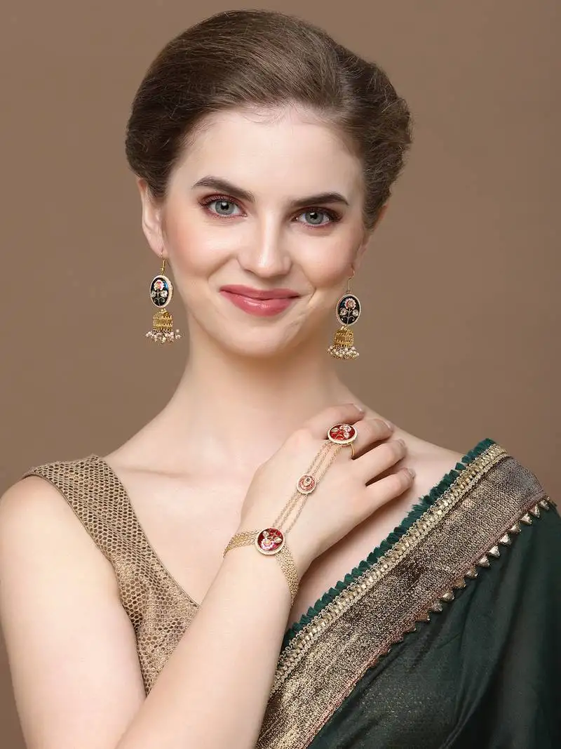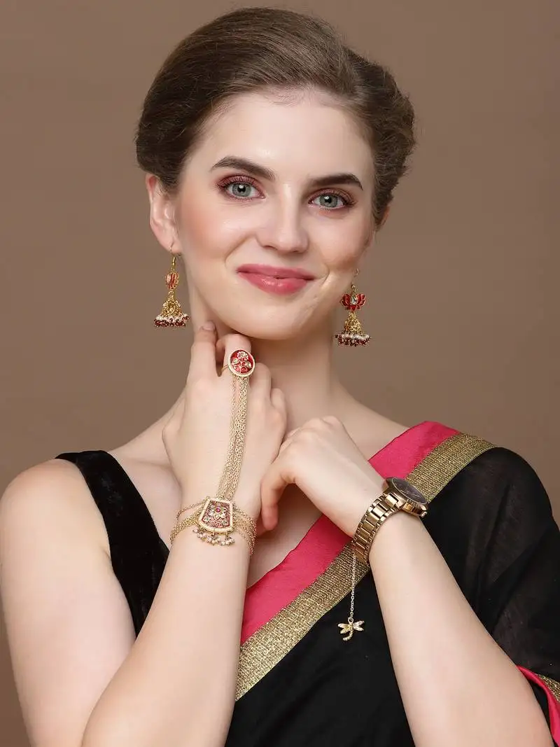 Sale!Red & gold adjustable hathphool with kundan & pearls