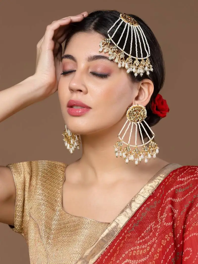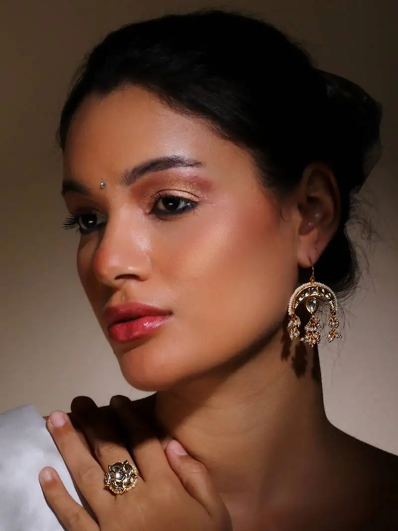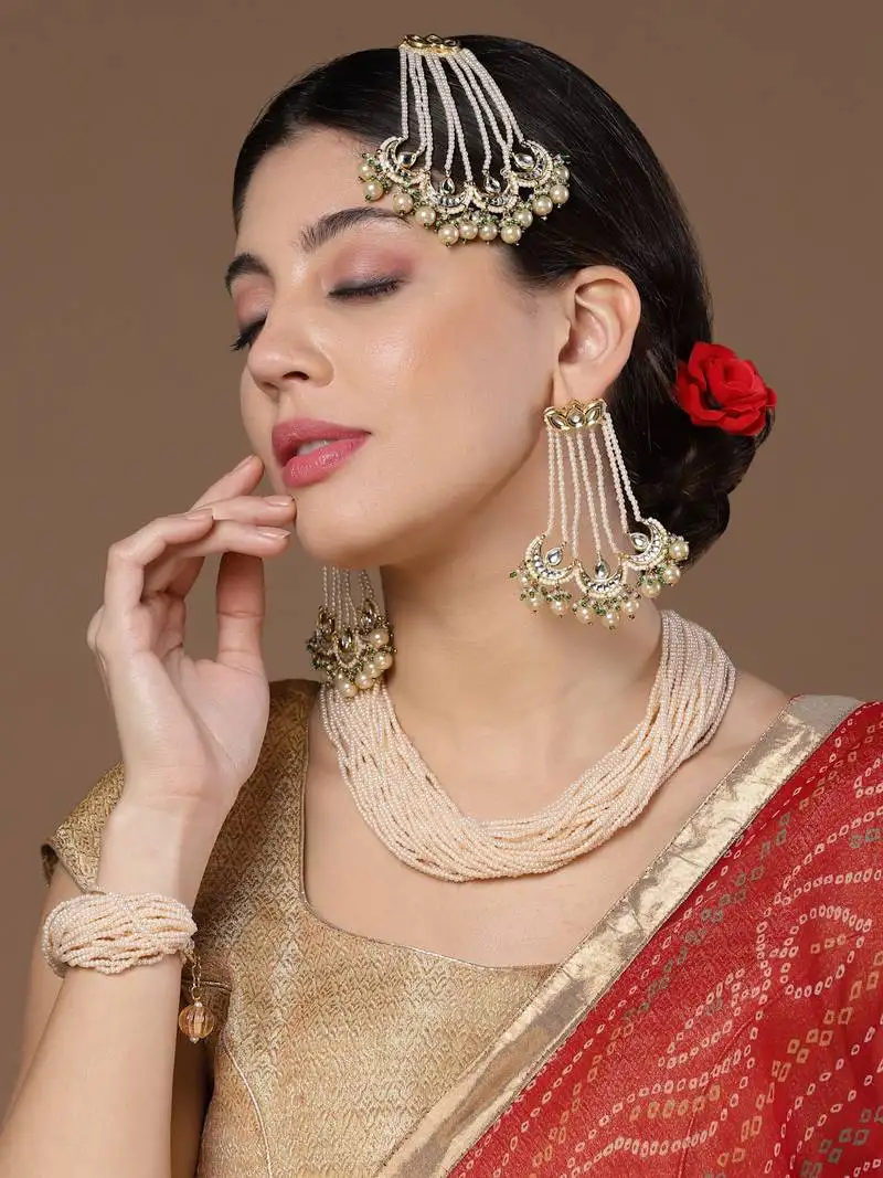 • Cream & orange adjustable bracelet with pearls & natural stones