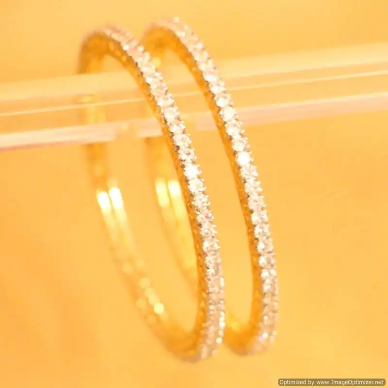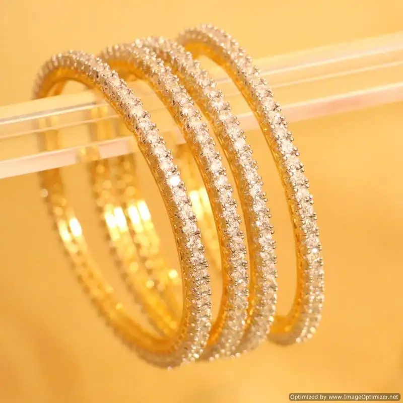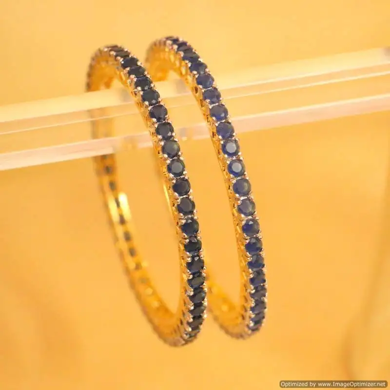 • Embellished gold brass alloy look blue sapphire single line bangles