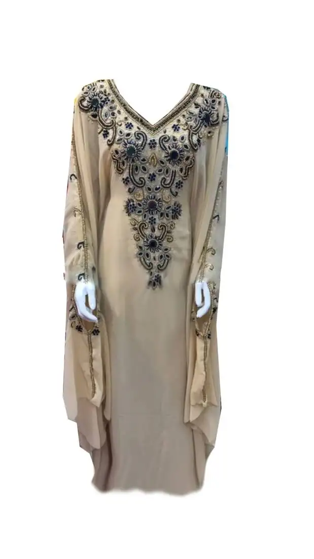 • Biege zari stone work georgette islamic style maxi partywear kaftan
