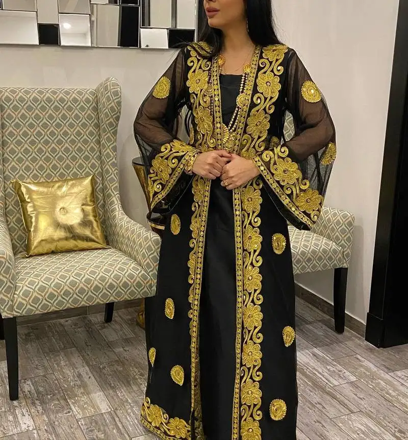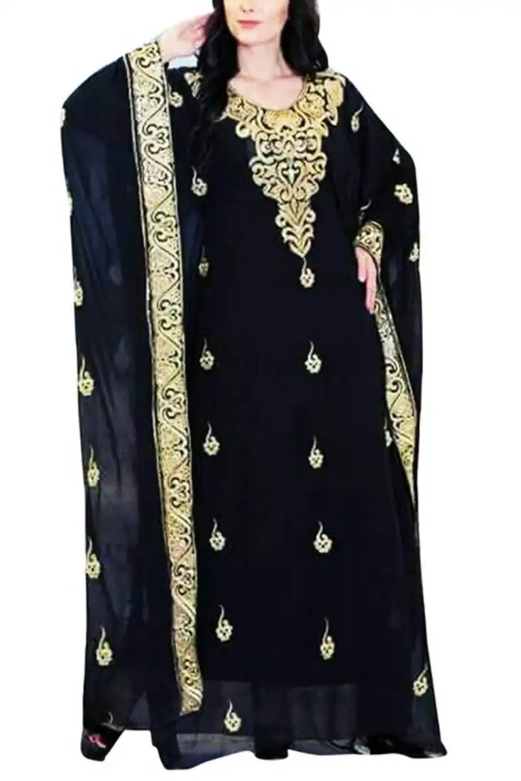 • Black embroidery work georgette hand stiched arab islamic farasha