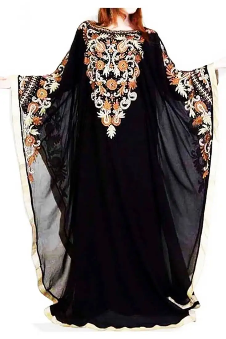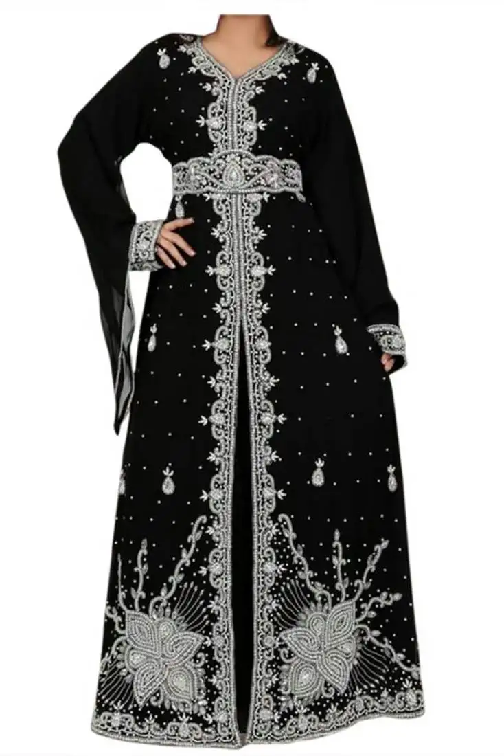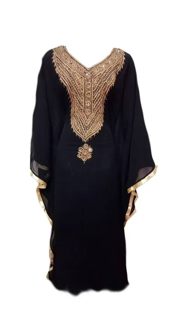 • Black beads and stone work georgette hand stiched arab moroccan kaftan