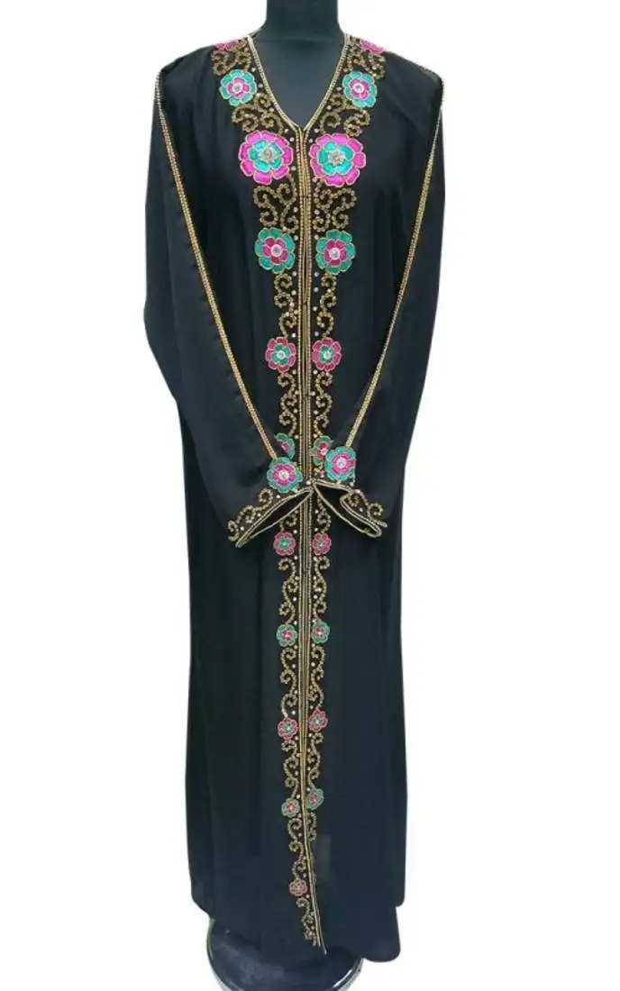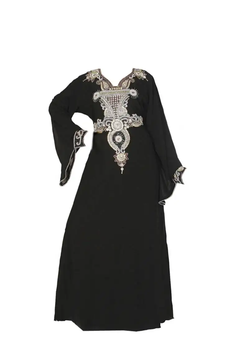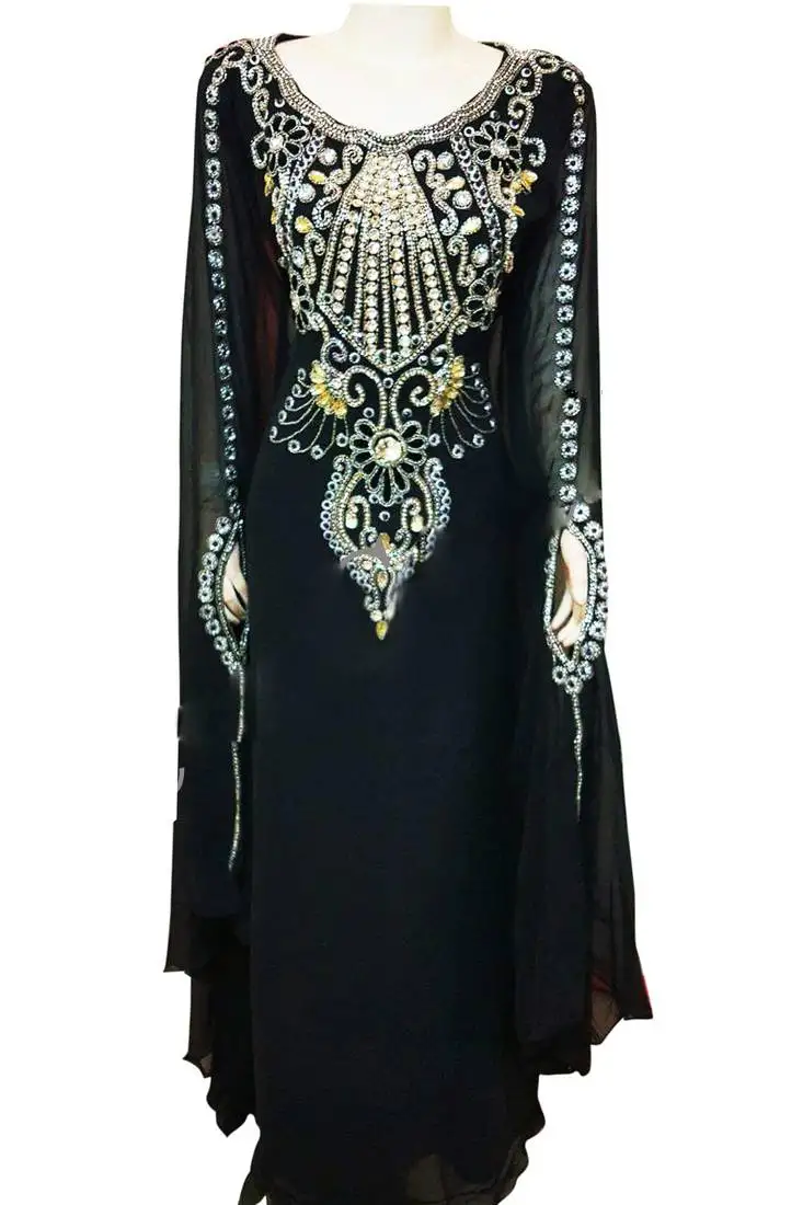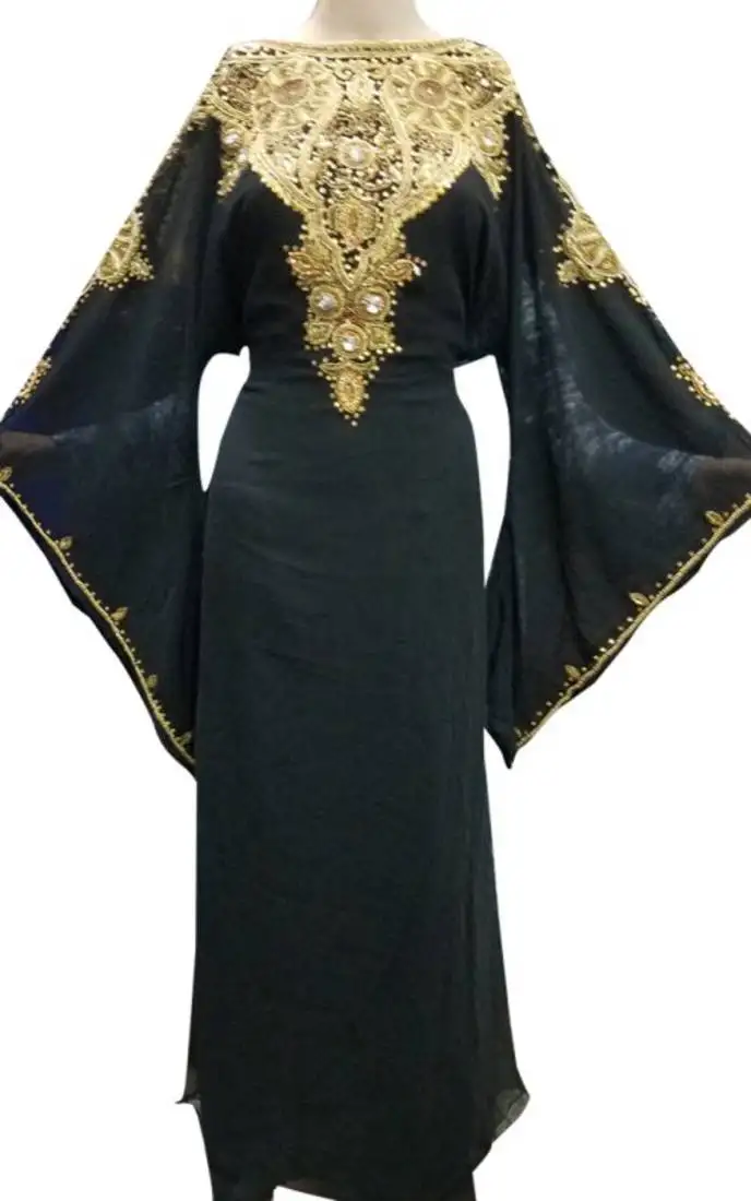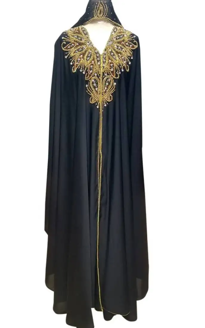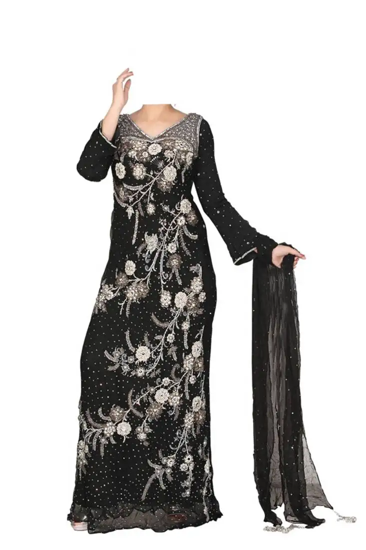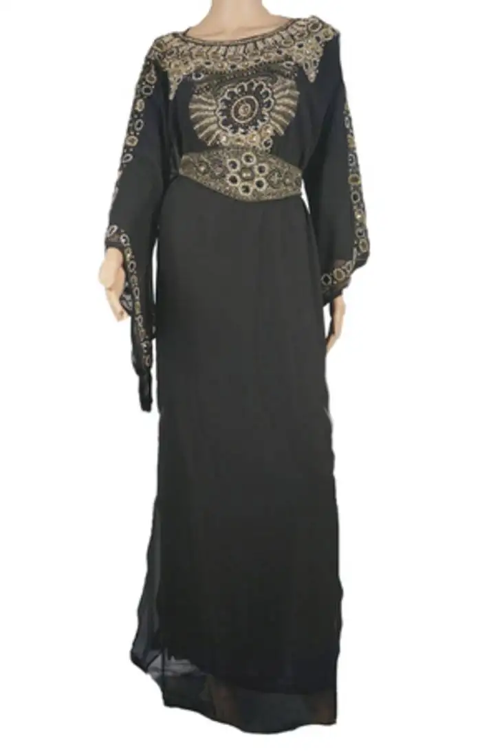 • Black zari stone work georgette islamic style maxi partywear farasha