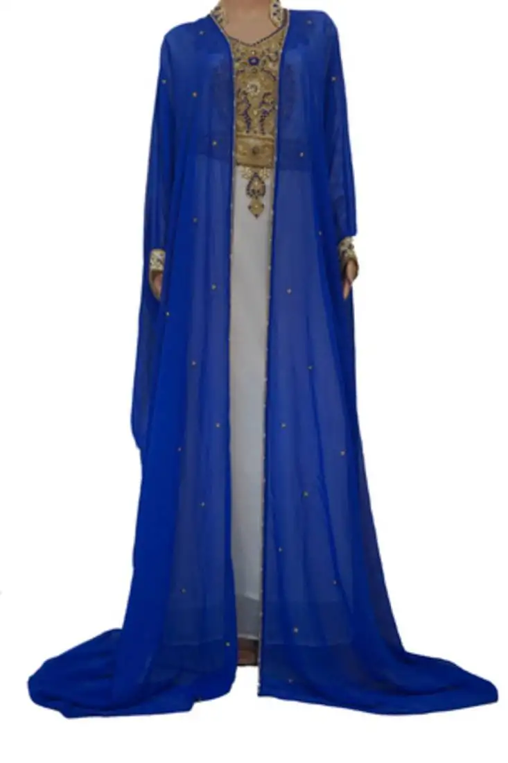 • Blue & white zari stone work georgette islamic style maxi partywear kaftan