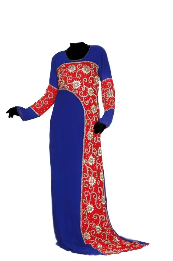 Blue & white zari stone work georgette islamic style maxi partywear kaftan