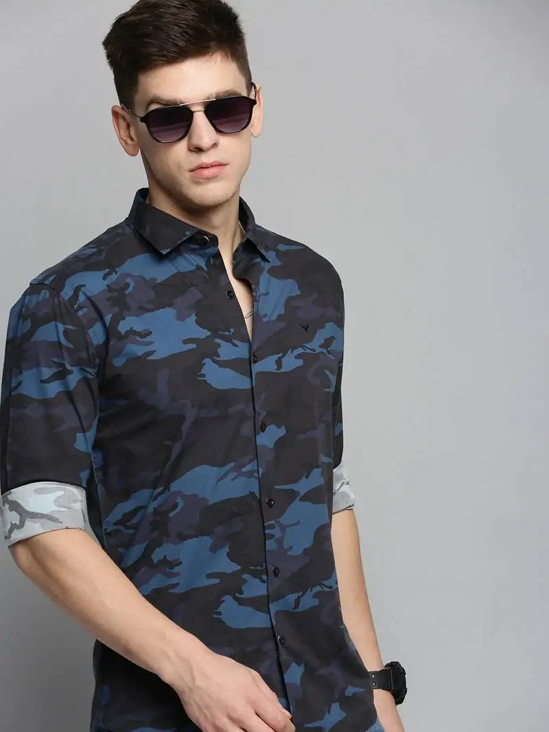 Sale!Men’s long sleeves camouflage navy blue shirt