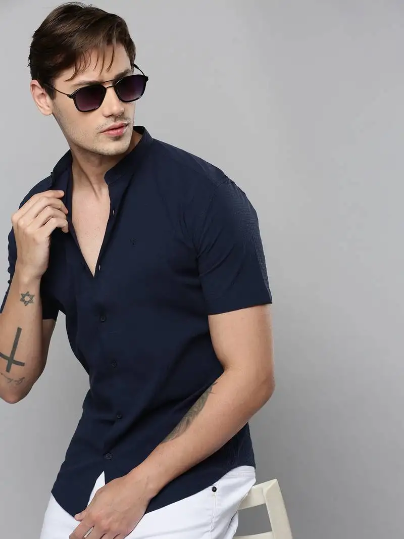 Sale!Men’s short sleeves vertical stripes blue shirt