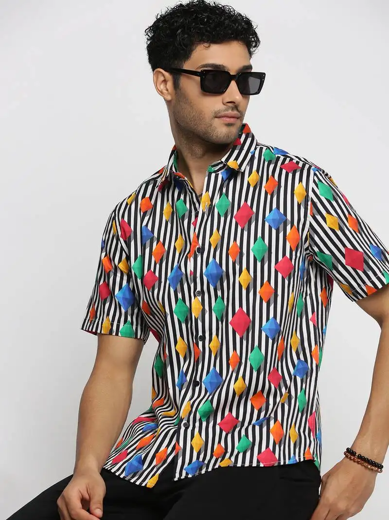 Sale!Men’s short sleeves vertical stripes multi shirt
