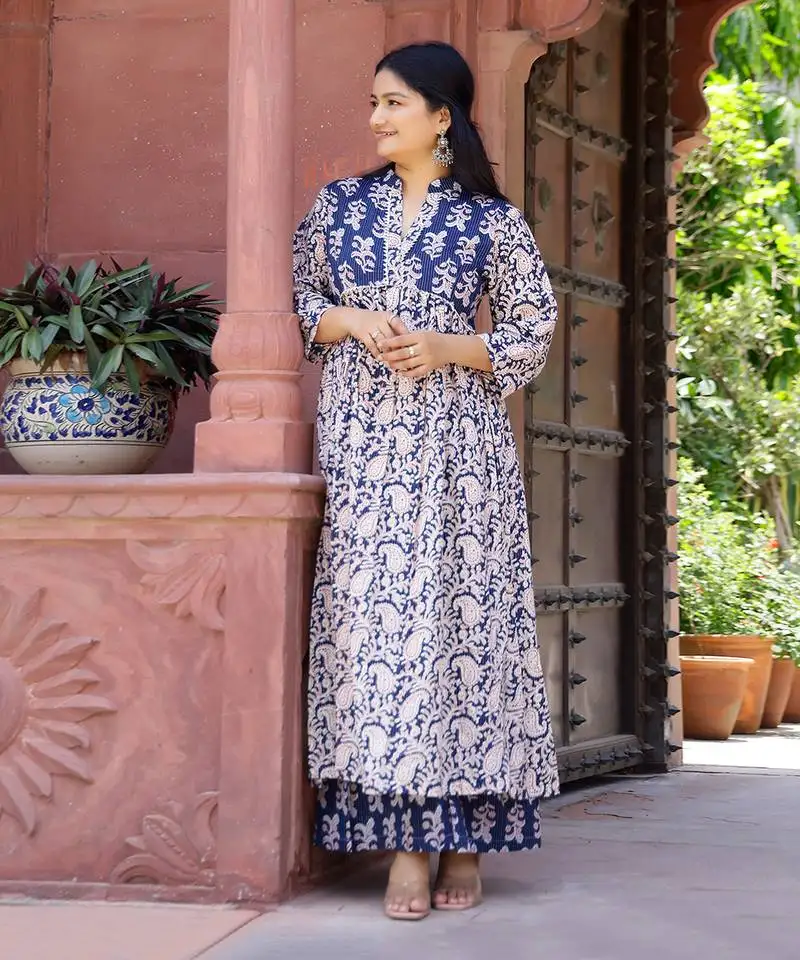 Sale!Navy blue printed kurta set