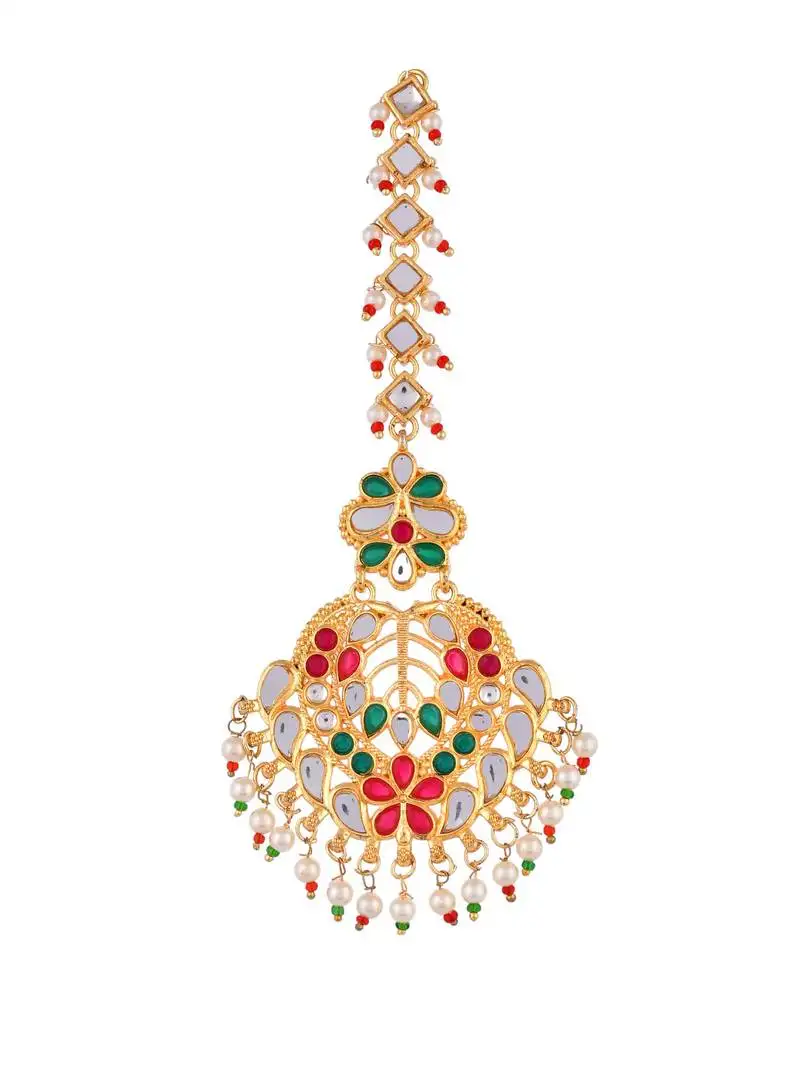 Sale!Gold plated traditional statement kundan pearl maang tikka