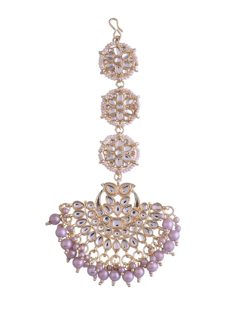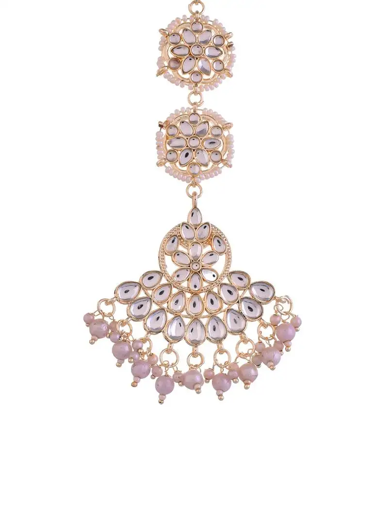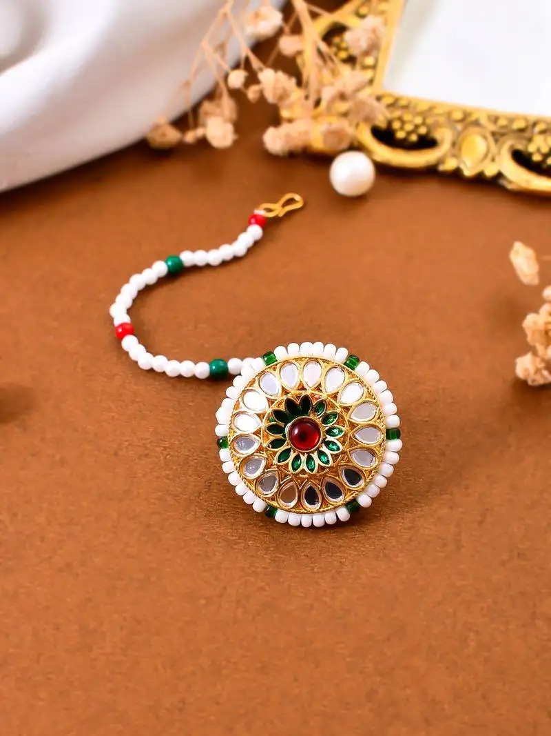 Sale!Gold plated white kundan & pearl studded enamelled maang tikka