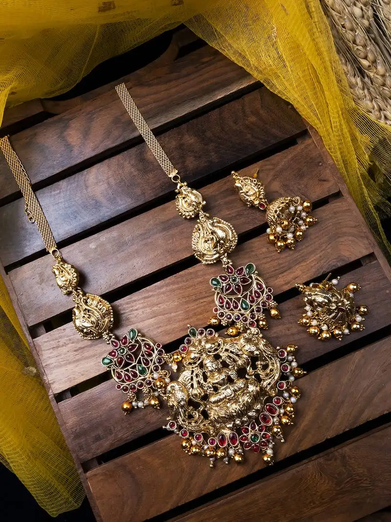 Sale!Unique gold plated gajanan gold hydra beads necklace set