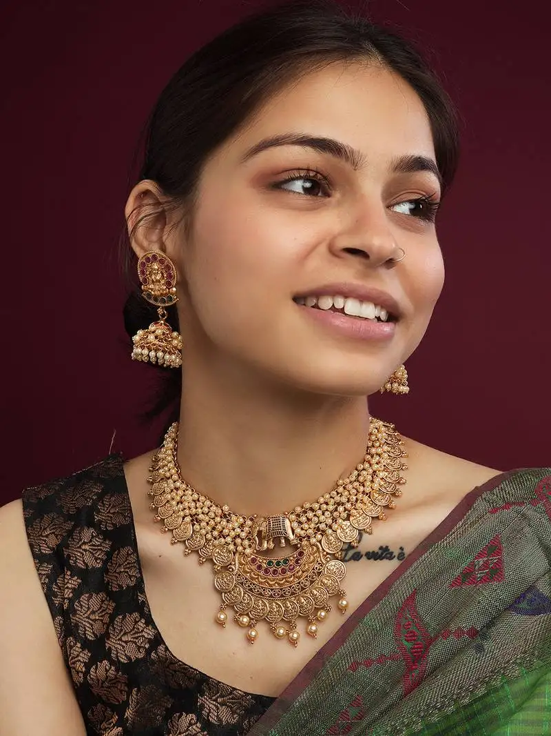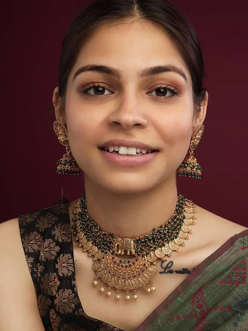 Sale!Unique gold plated gajanan green hydra beads necklace set