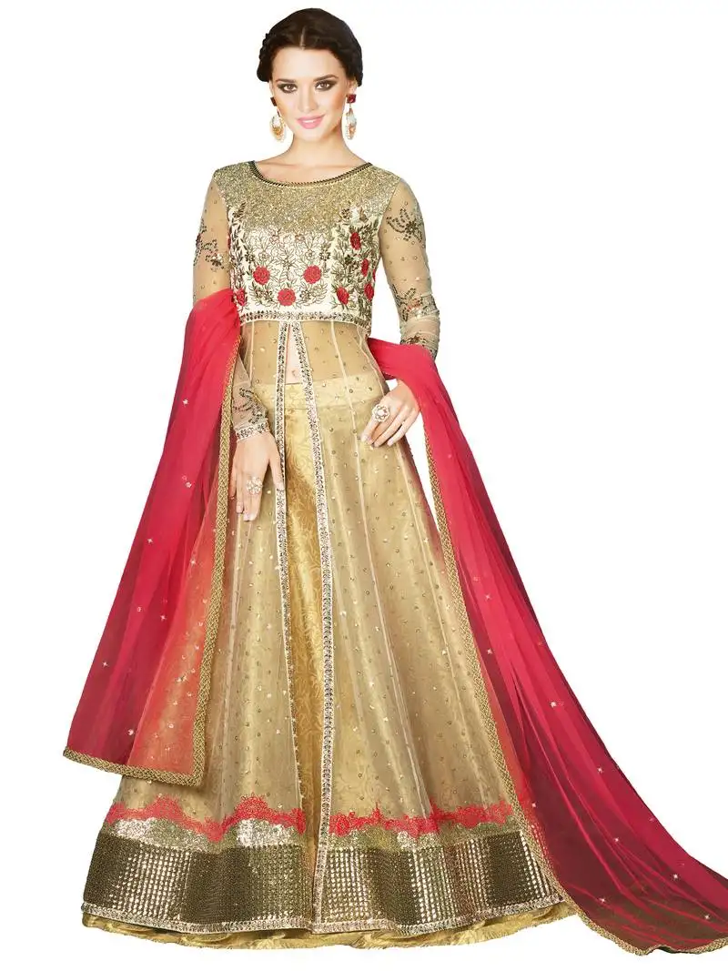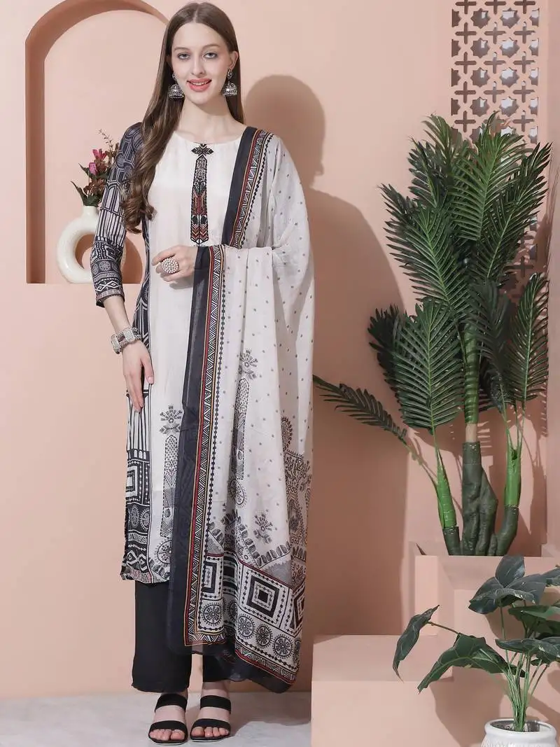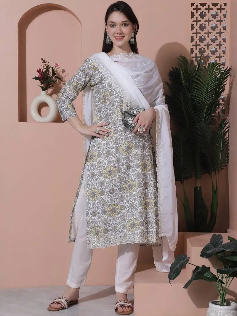 Sale!Off white embroidered net unstitched salwar with dupatta