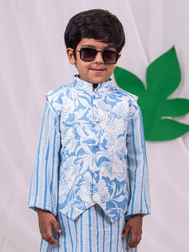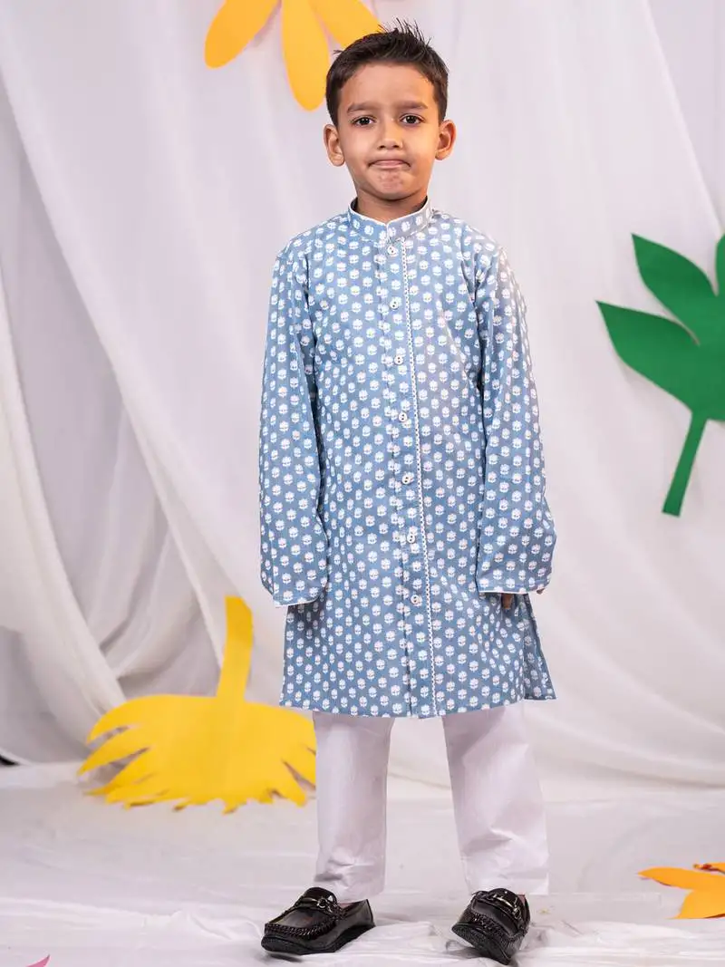 • Boys' blue and white kurta pyjama set
