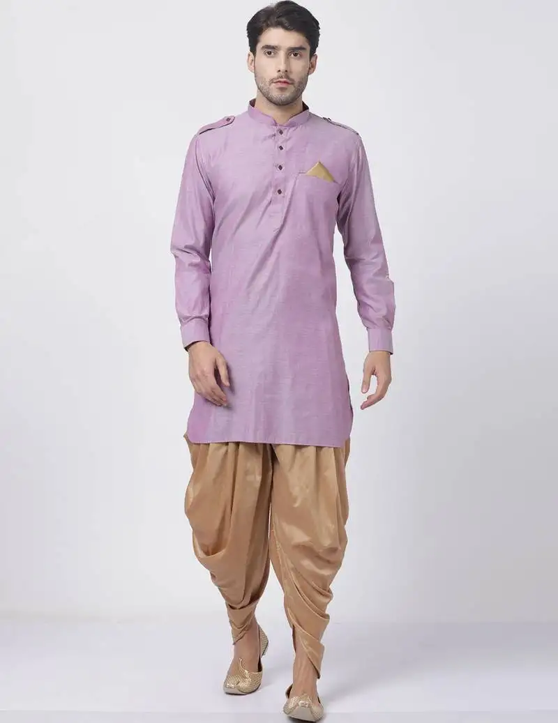 • Vm men's rose gold and black silk blend kurta, pyjama & dupatta set