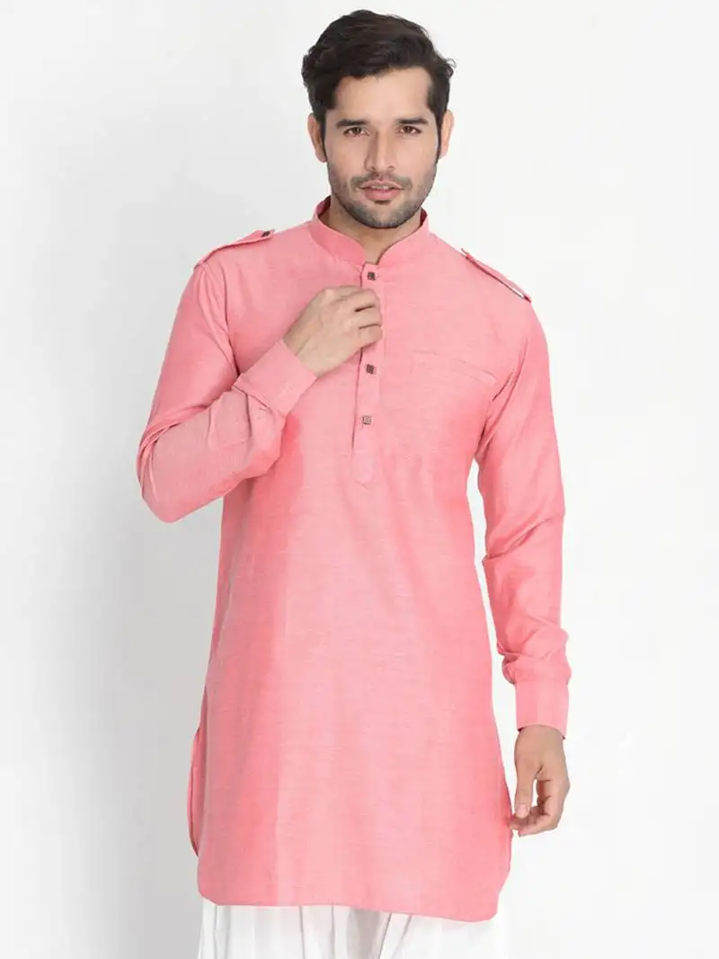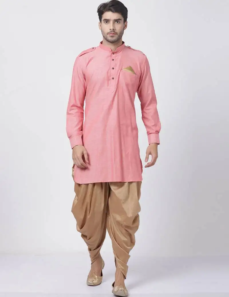 Vm men’s rose gold and black silk blend kurta, pyjama & dupatta set
